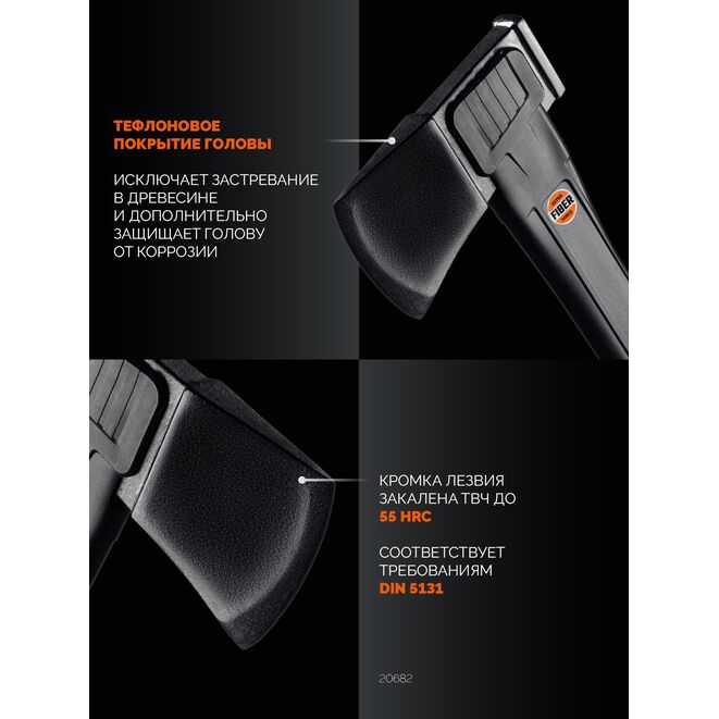 • Тефлоновое покрытие лезвия значительно снижает трение с древесиной в процессе рубки и увеличивает антикоррозионные свойства топора