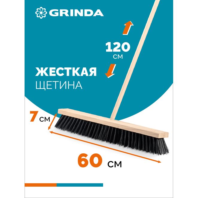 GRINDA EURO буковая колодка 60см, шлифованный черенок из берёзы 120см (d22мм) щетина 70мм, 5-рядная, уличная щётка с черенком (39251-600)