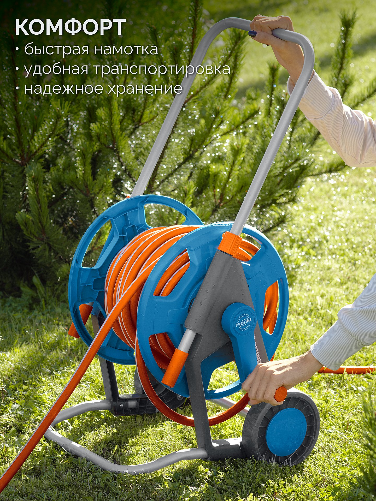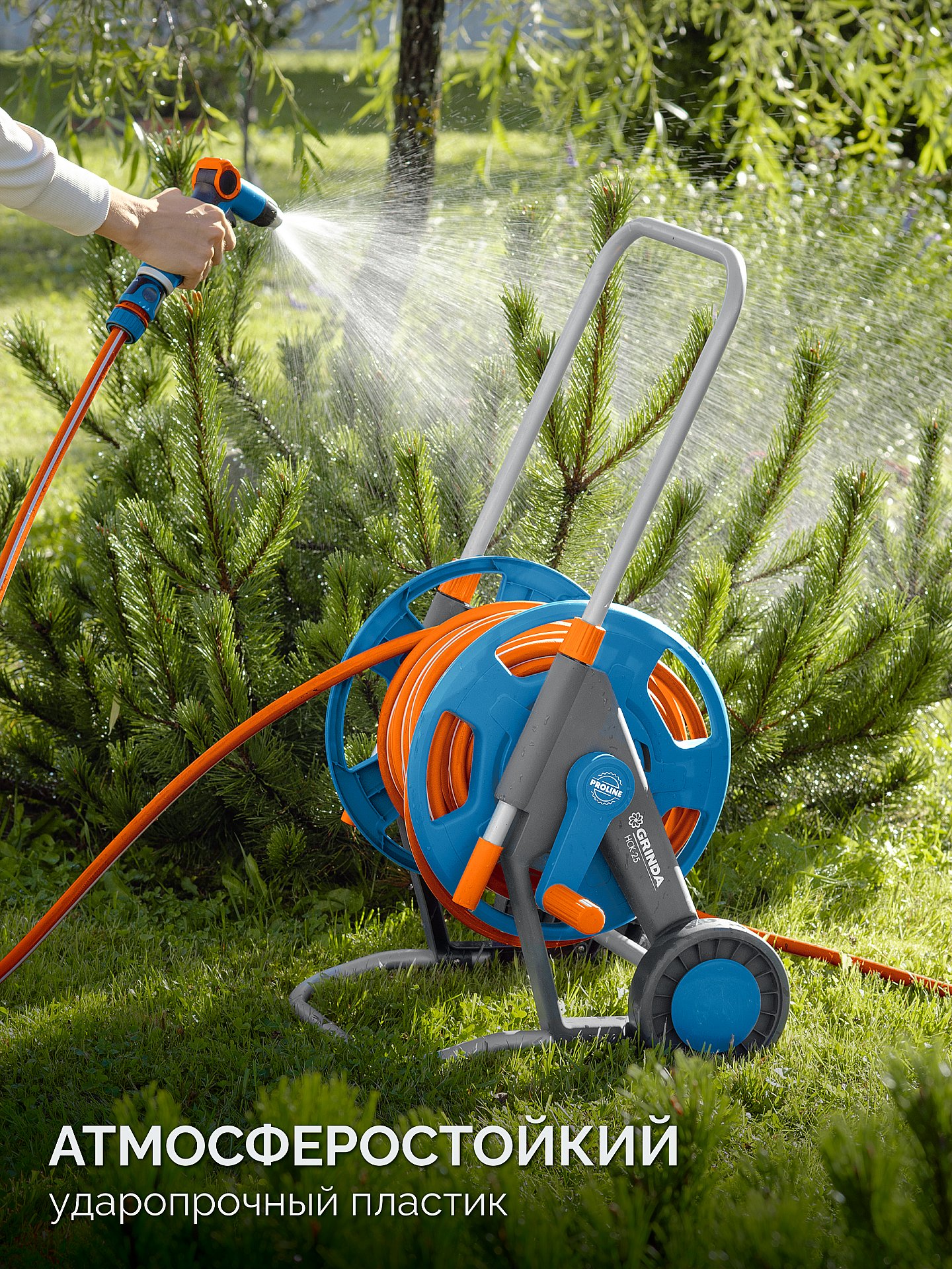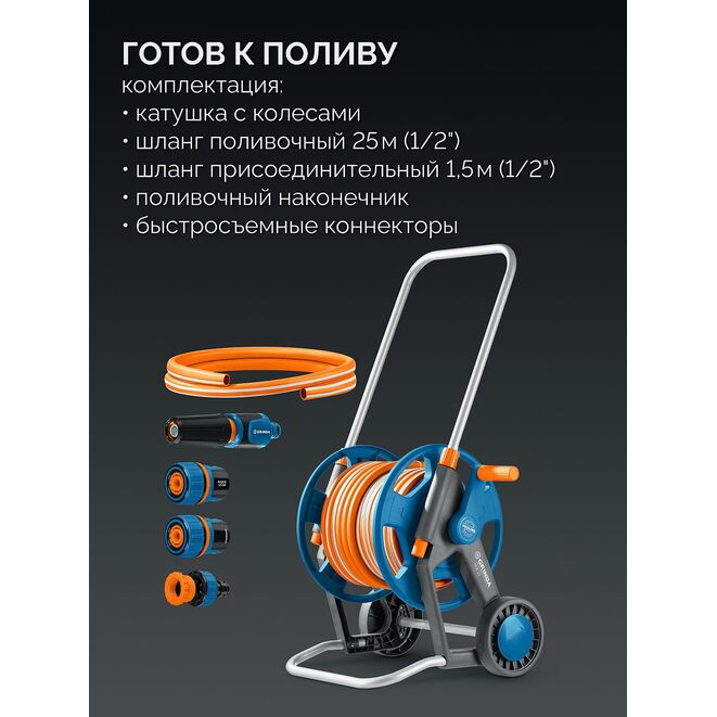 GRINDA HCK-25, шланг 25м x 1/2", поливочный набор 4 предмета, усиленные колеса, телескопическая ручка, катушка со шлангом в комплект ProLine (428461)