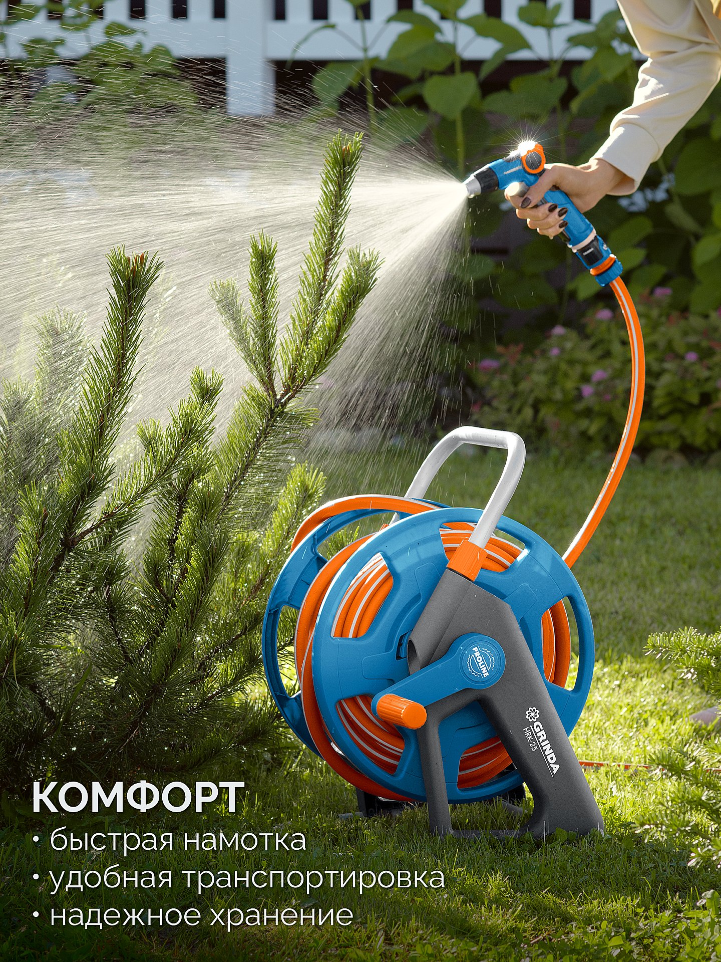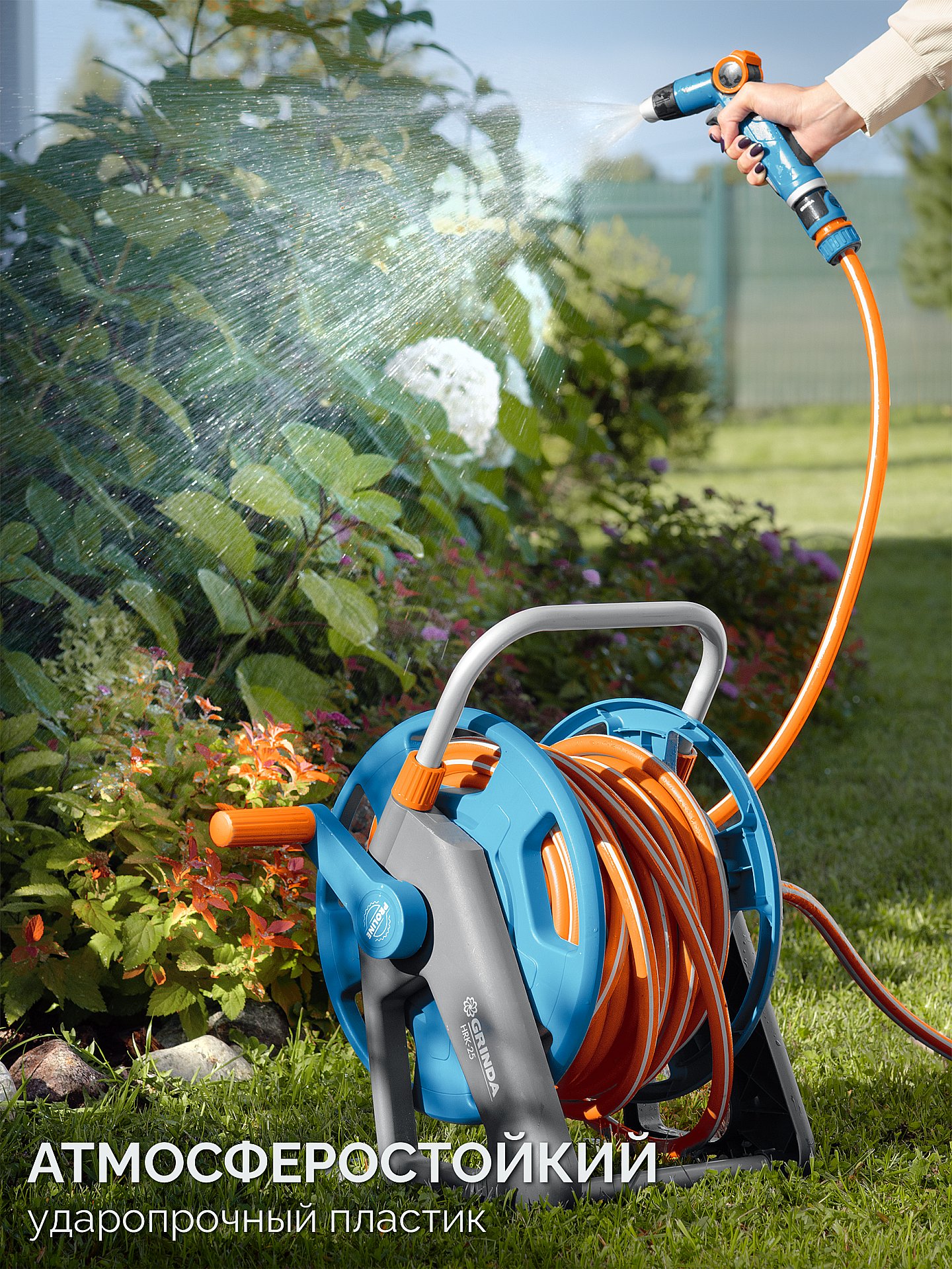 GRINDA HR-45, для шлангов 45м x 1/2" и 20м х 3/4", стальные опоры, пластиковый барабан, катушка для шлангов, ProLine (428450)