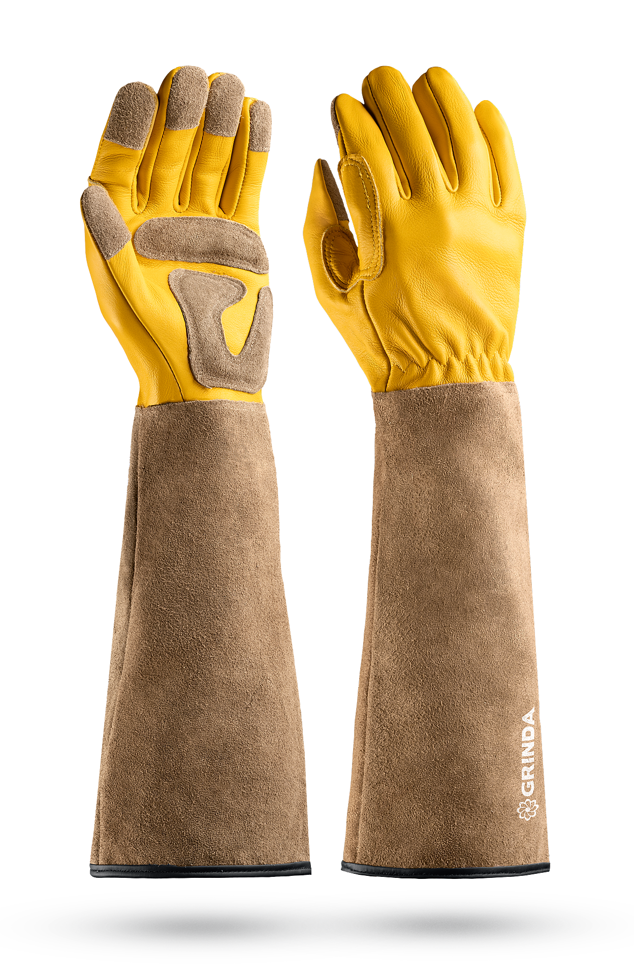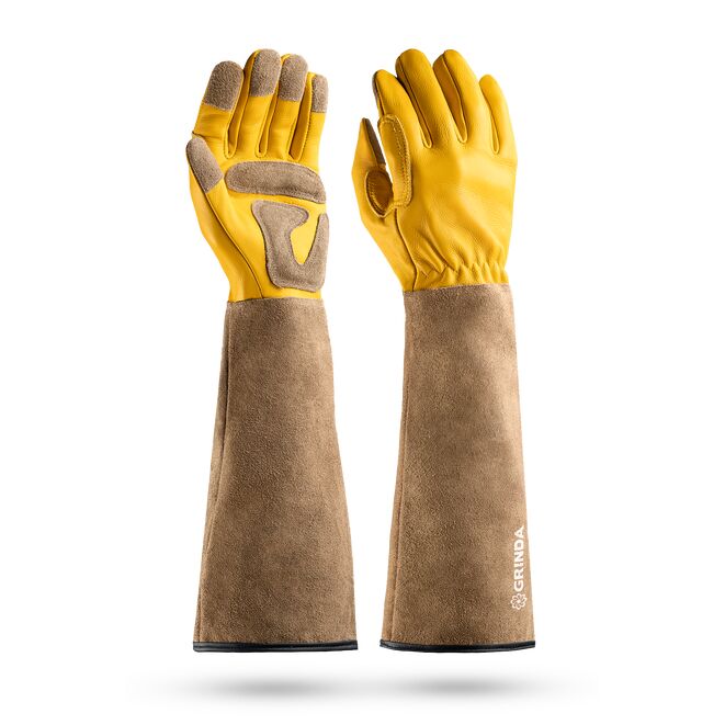 GRINDA ROSE, M (8), кожаные садовые перчатки для колючих кустарников с увеличенной крагой, усиленная ладонь и кончики пальцев, PRO Line (11303-M)