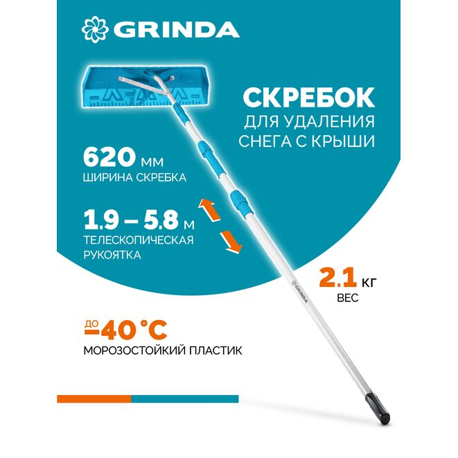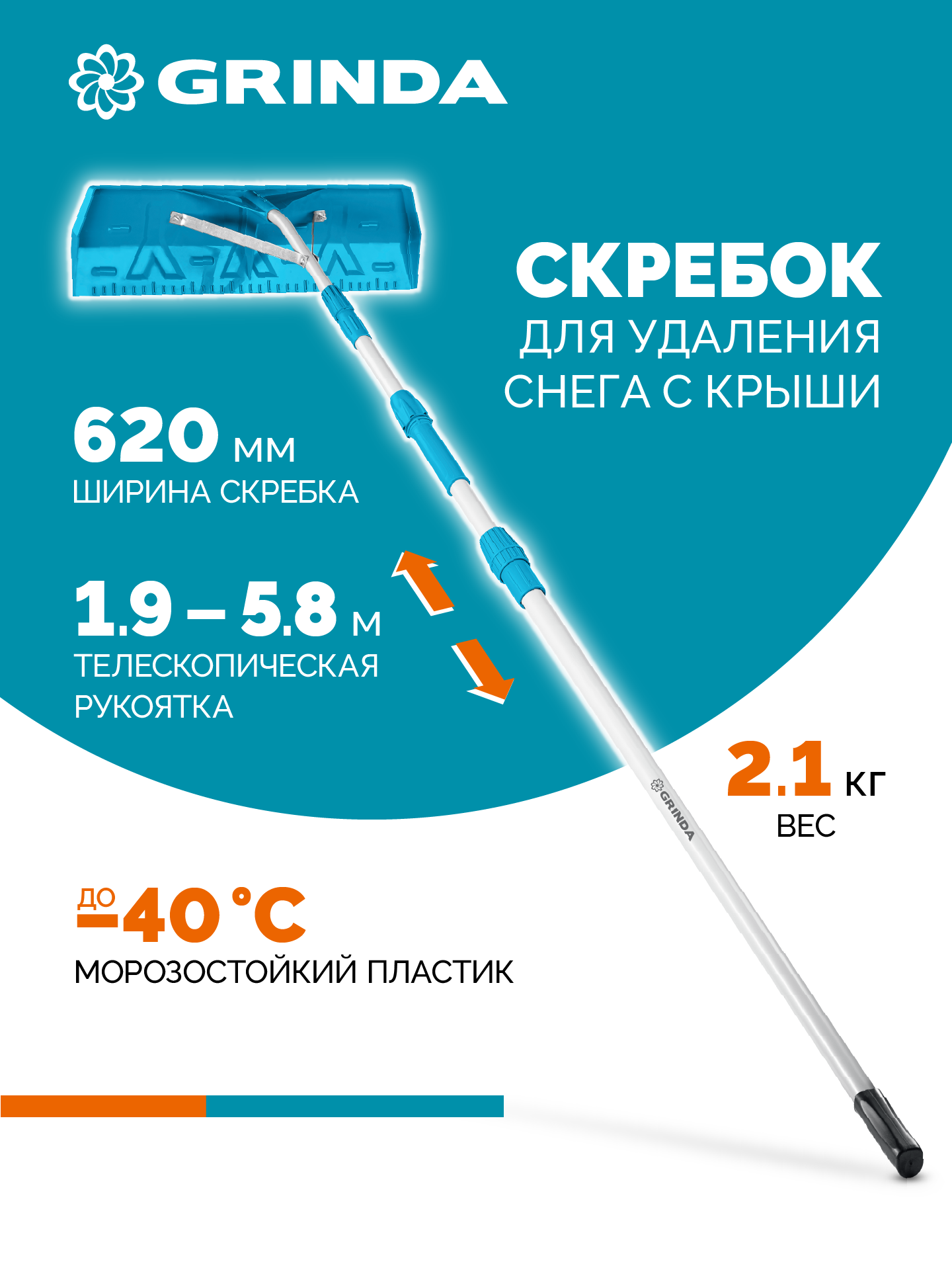 GRINDA скребок для удаления снега с крыши, телескопический,1,9 - 5,8 м, 620 мм, PROLine (39945)