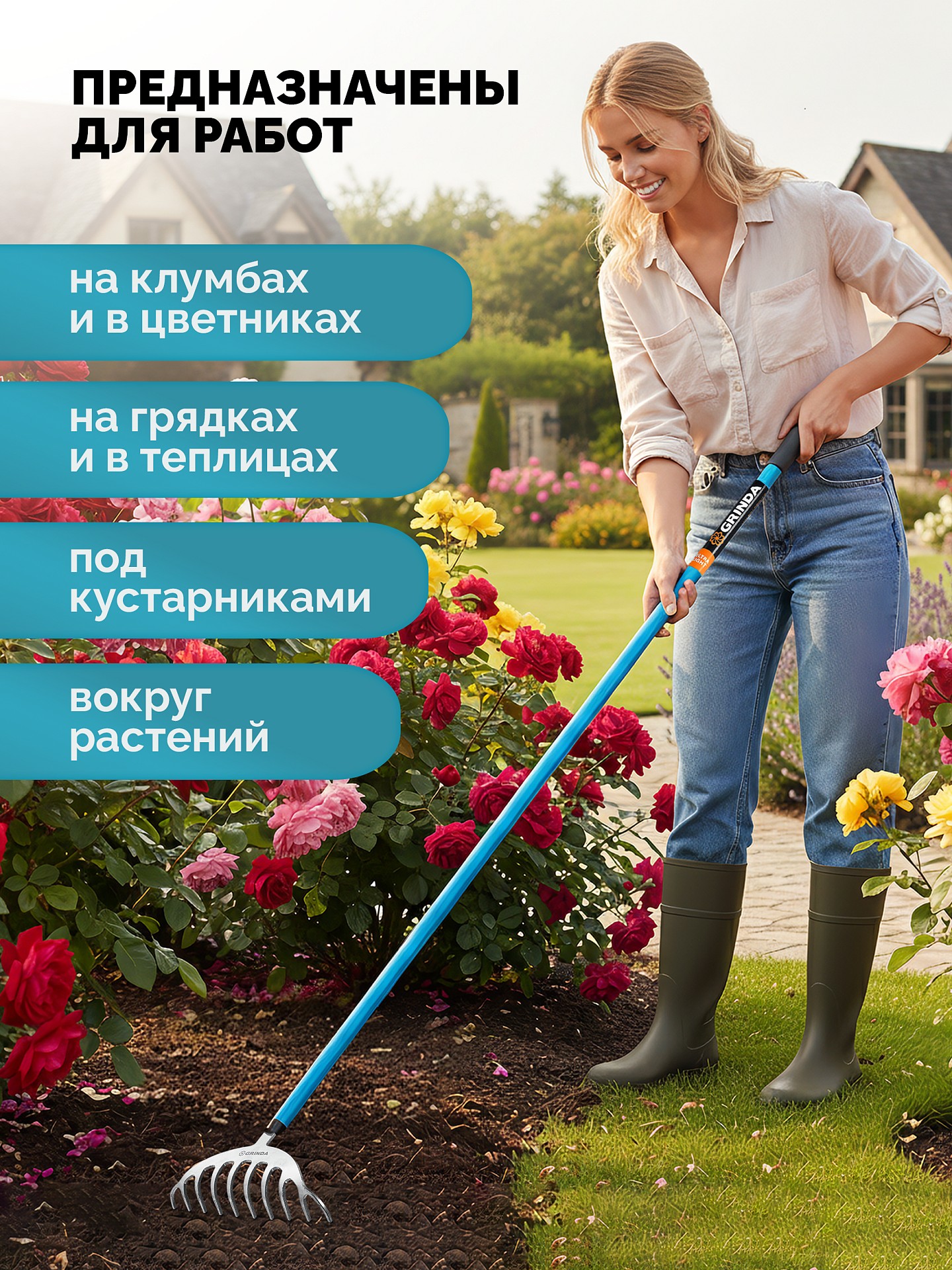 - -Идеальное выравнивание почвы на клумбах.,