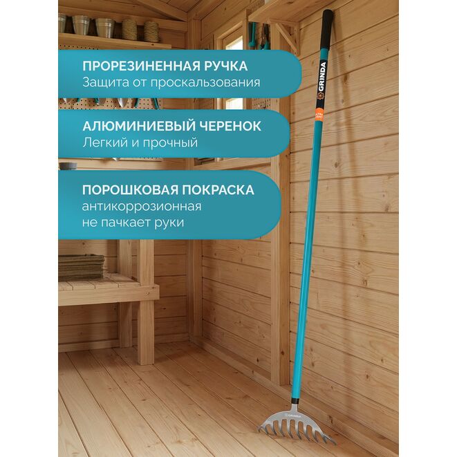 GRINDA SR-10 грабли цветочные, 250х70х1550 мм, 10 зубьев, алюминиевый черенок, PROLine (39483-10)