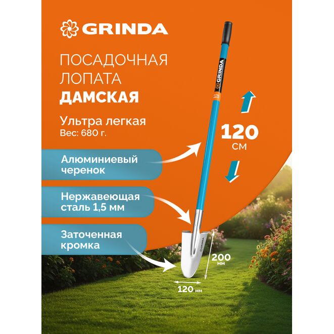 GRINDA WS-1 лопата дамская посадочная, 200х120х1200мм, алюминиевый черенок, PROLine (421826)