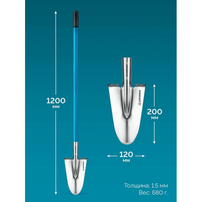 GRINDA WS-1 лопата дамская посадочная, 200х120х1200мм, алюминиевый черенок, PROLine (421826)