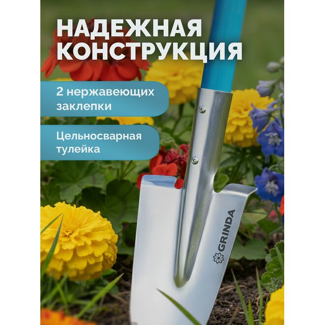 Лопата дамская посадочная GRINDA 421826, предназначена для выполнения различных земляных работ. Рабочая часть, изготовленная из стали высочайшего качества, и надежная рукоятка гарантируют прочность и длительный срок эксплуатации изделия. Легкая компактная лопата удобна в хранении и транспортировке.Характеристики GRINDA 421826: