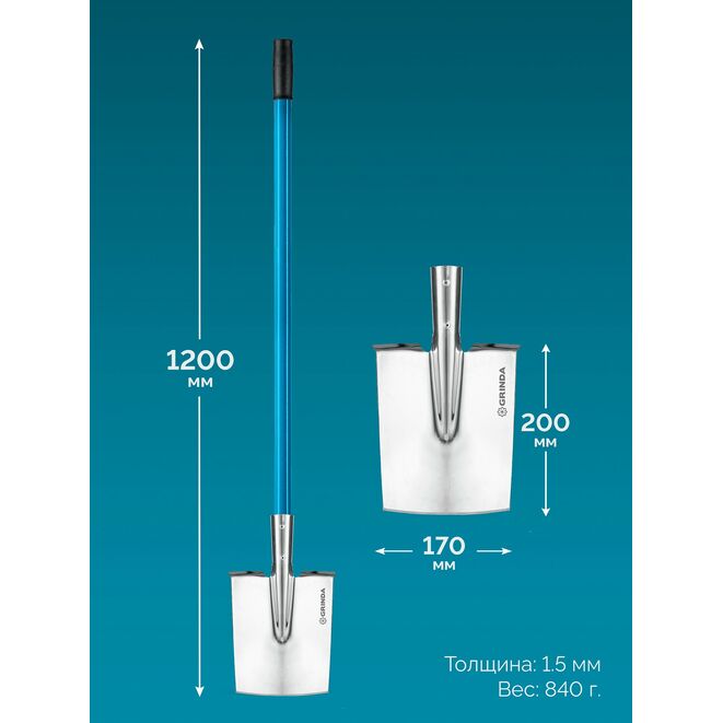 Лопата штыковая прямоугольная GRINDA 421828, предназначена для проведения садово-огородных и строительных работ. Штыковая лопата является простым и универсальным инструментом для широкого фронта работ, от перекопки твердых почв до перерезания небольших корней.Характеристики GRINDA 421828:
