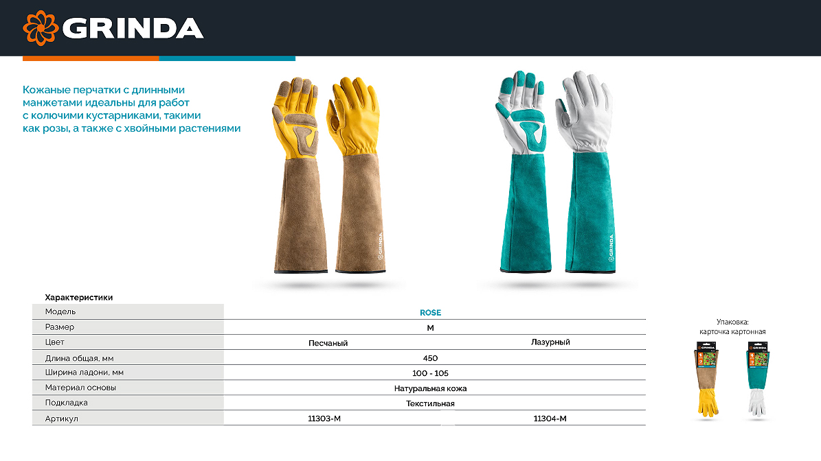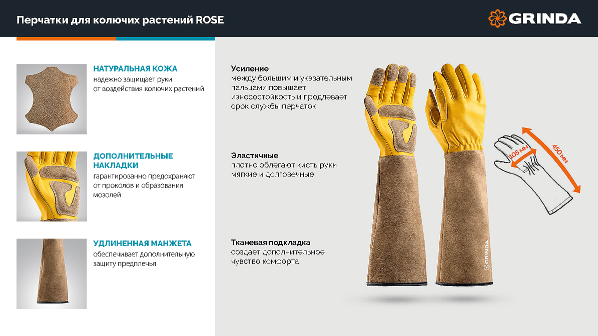 Кожаные садовые перчатки GRINDA. НОВИНКА!
