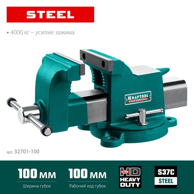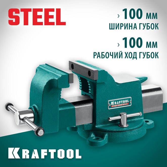 KRAFTOOL STEEL, 100 мм, стальные слесарные тиски (32701-100)