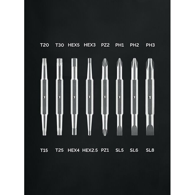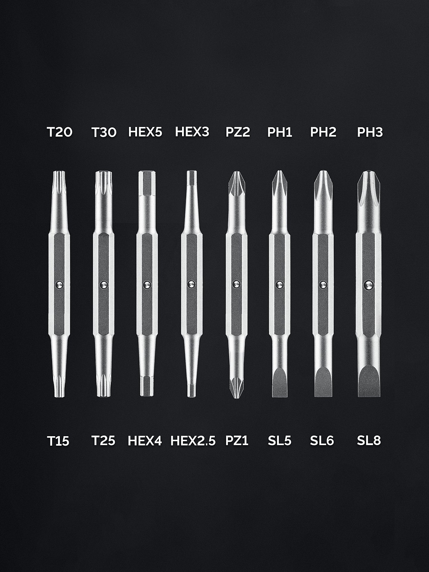 - 19-в-1 хранение двухсторонних бит внутри рукоятки