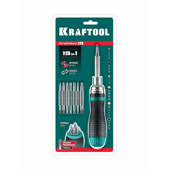 KRAFTOOL 19-в-1 KraftMax 19, реверсивная отвертка с битами (25862)