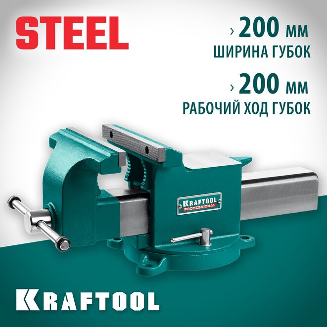 KRAFTOOL STEEL, 200 мм, стальные слесарные тиски (32701-200)