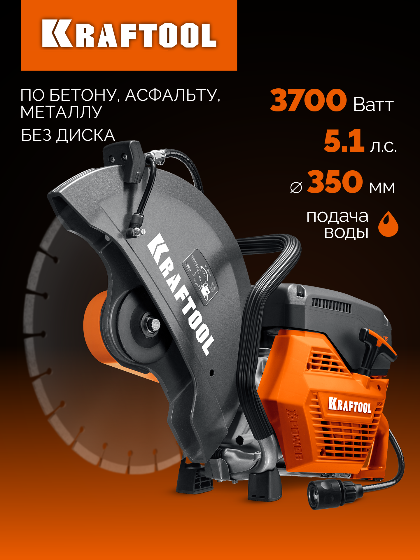 KRAFTOOL 3700 Вт, 350 мм, без диска, бензорез по бетону (бетонорез) (K770-14)
