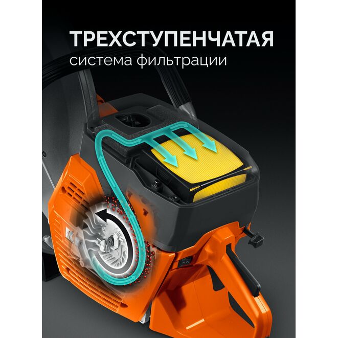 Бензорез KRAFTOOL K770-16 H предназначен для выполнения резов в литом бетоне, камне, кирпиче, металлических конструкциях, стенах, асфальте и бордюрах. Универсальный бензорез оснащен одной из самых результативных центробежных систем очистки воздуха нового поколения, которая обеспечивает работу инструмента без замены фильтра в течение до одного года, а также встроенной автоматической системой компенсации загрязнения фильтра и высокоэффективной системой подавления вибраций, оснащается двигателем, который уменьшает выбросы на 50% и расход топлива максимум на 25%.Характеристики Kraftool K770-16 H: