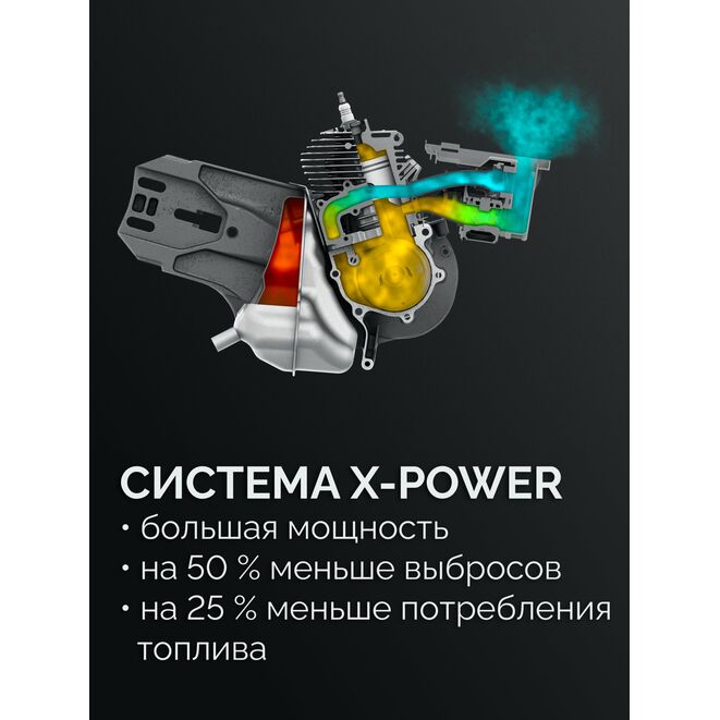 - Двигатель с системой X-Power производит на 50 % меньше выбросов, потребляет на 25 % меньше топлива и обеспечивает большую мощность