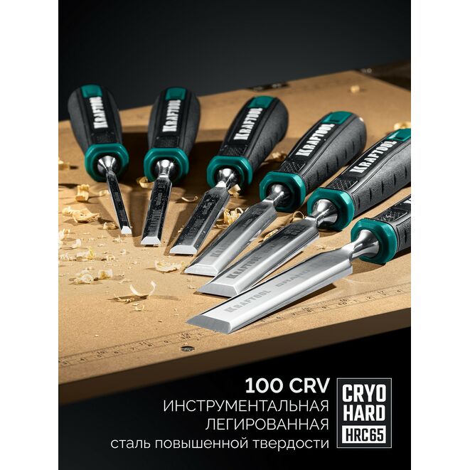Профессиональная линейка стамесок из высококачественной инструментальной стали 100CrV с твердостью 65HRC, зеркальной полировкой и трехкомпонентной рукояткой высочайшего качества со стальным затыльником.Применение