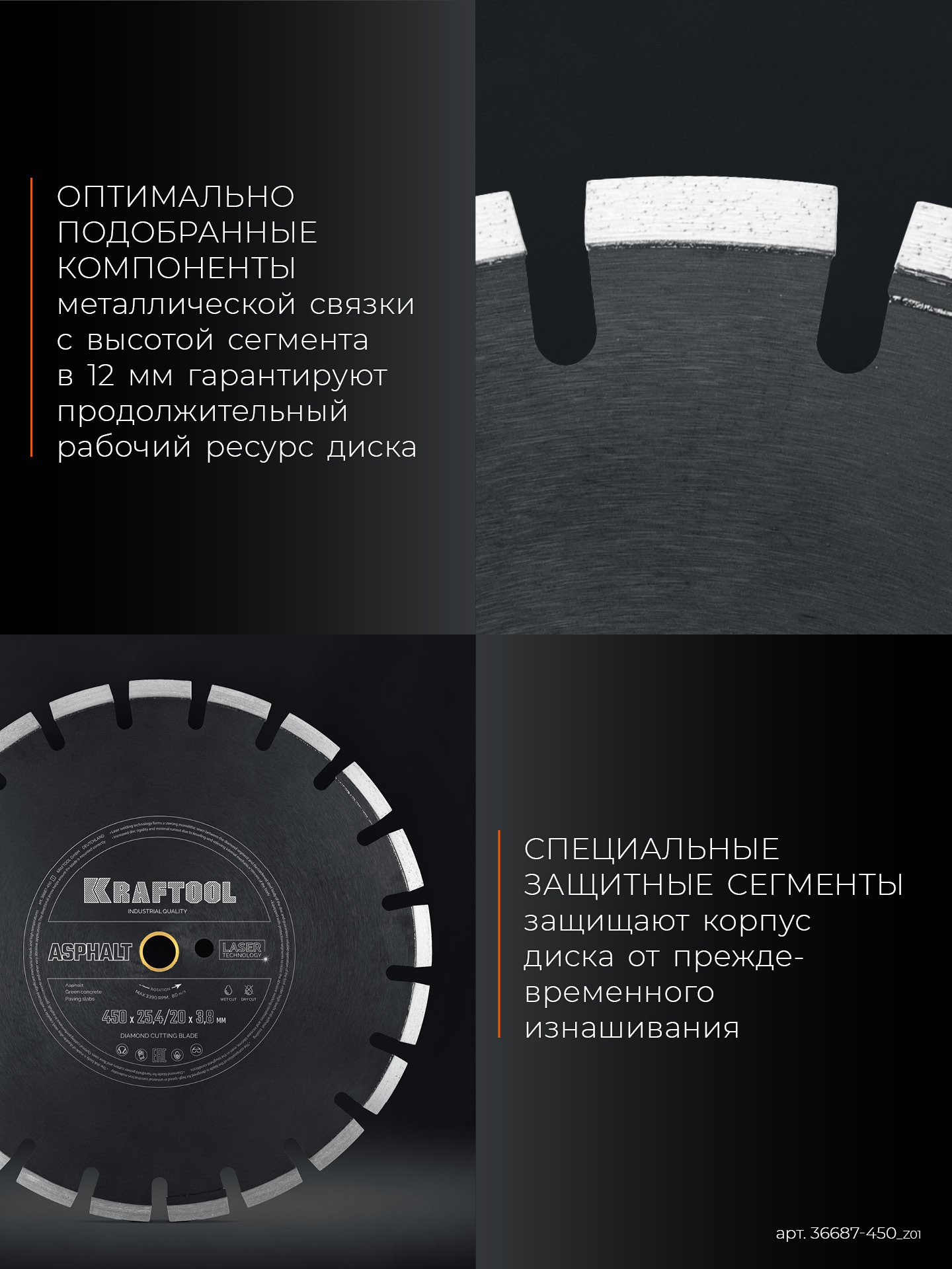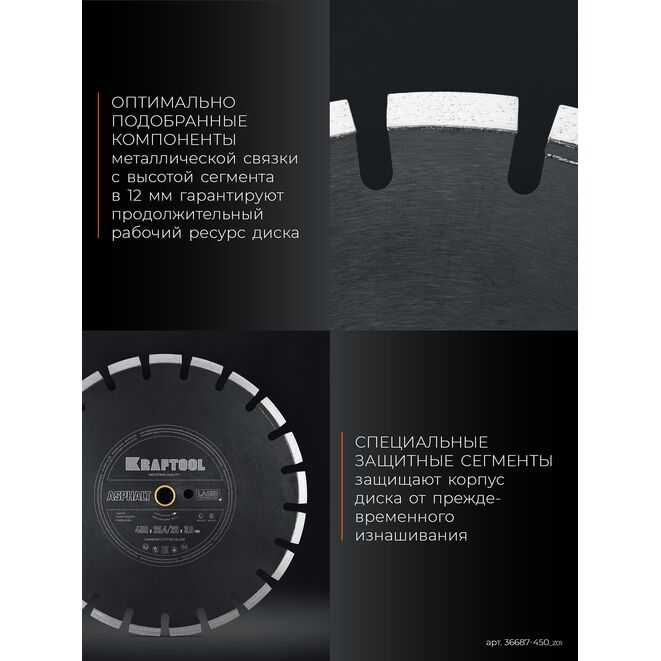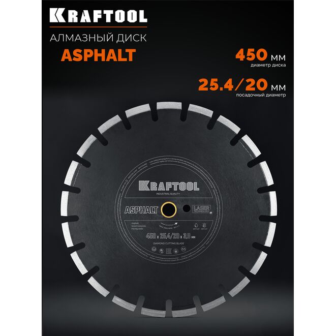 KRAFTOOL ASPHALT 450 мм (25.4/20 мм, 12х3.8 мм), алмазный диск (36687-450_z01)