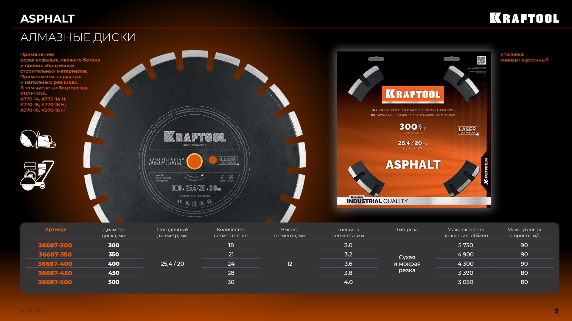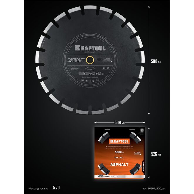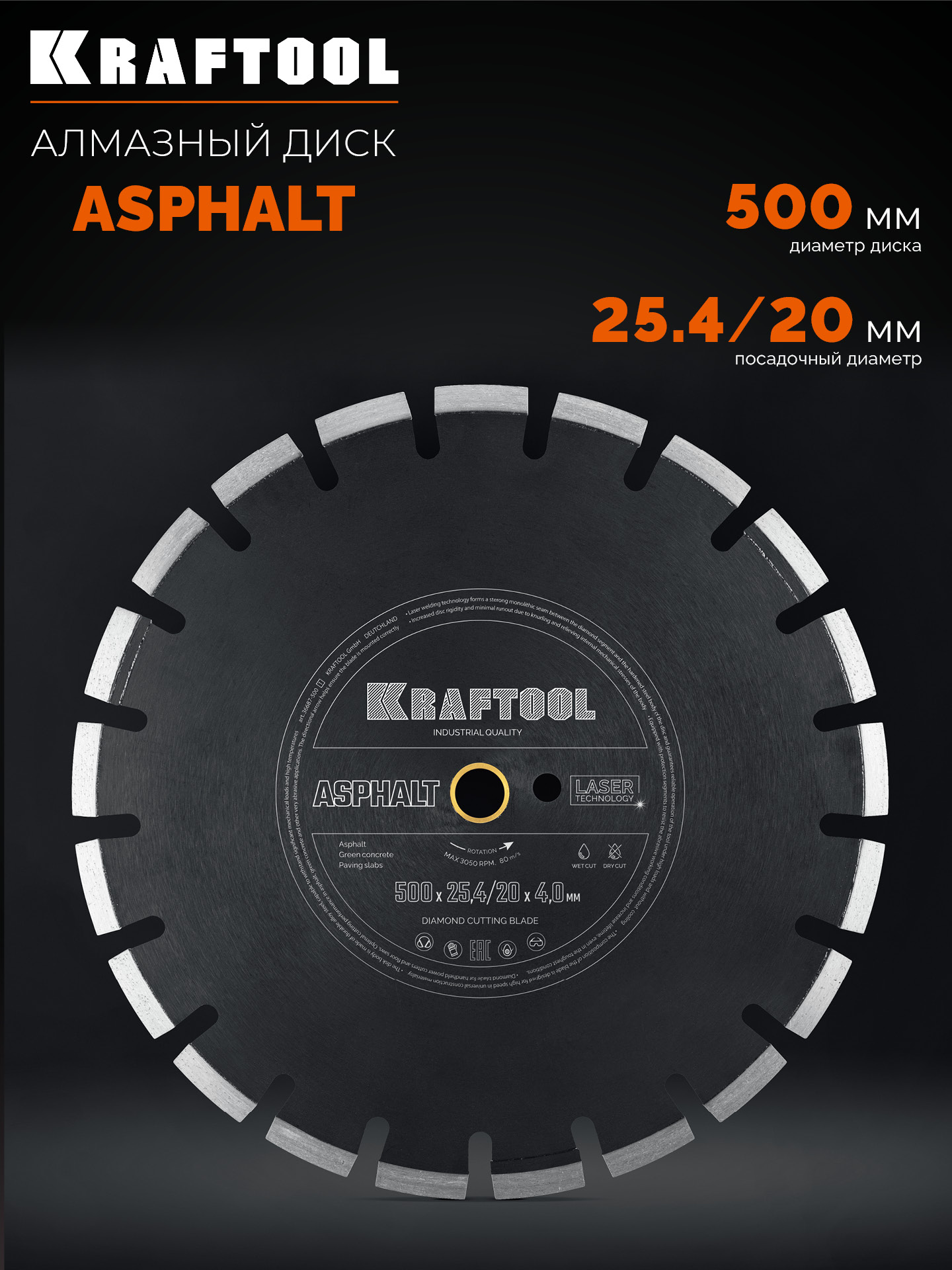 KRAFTOOL ASPHALT 500 мм (25.4/20 мм, 12х4.0 мм), алмазный диск (36687-500_z01)