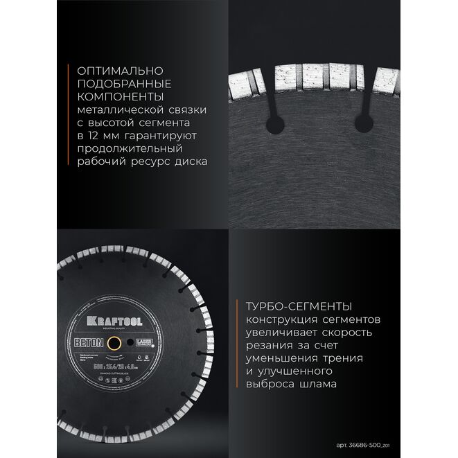 KRAFTOOL BETON 500 мм (25.4/20 мм, 12х4.0 мм), алмазный диск (36686-500_z01)