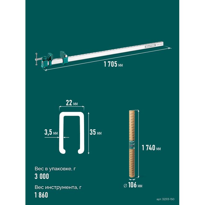 KRAFTOOL BRC-150, 1525/48 мм, высокоточная струбцина-вайма (32313-150)
