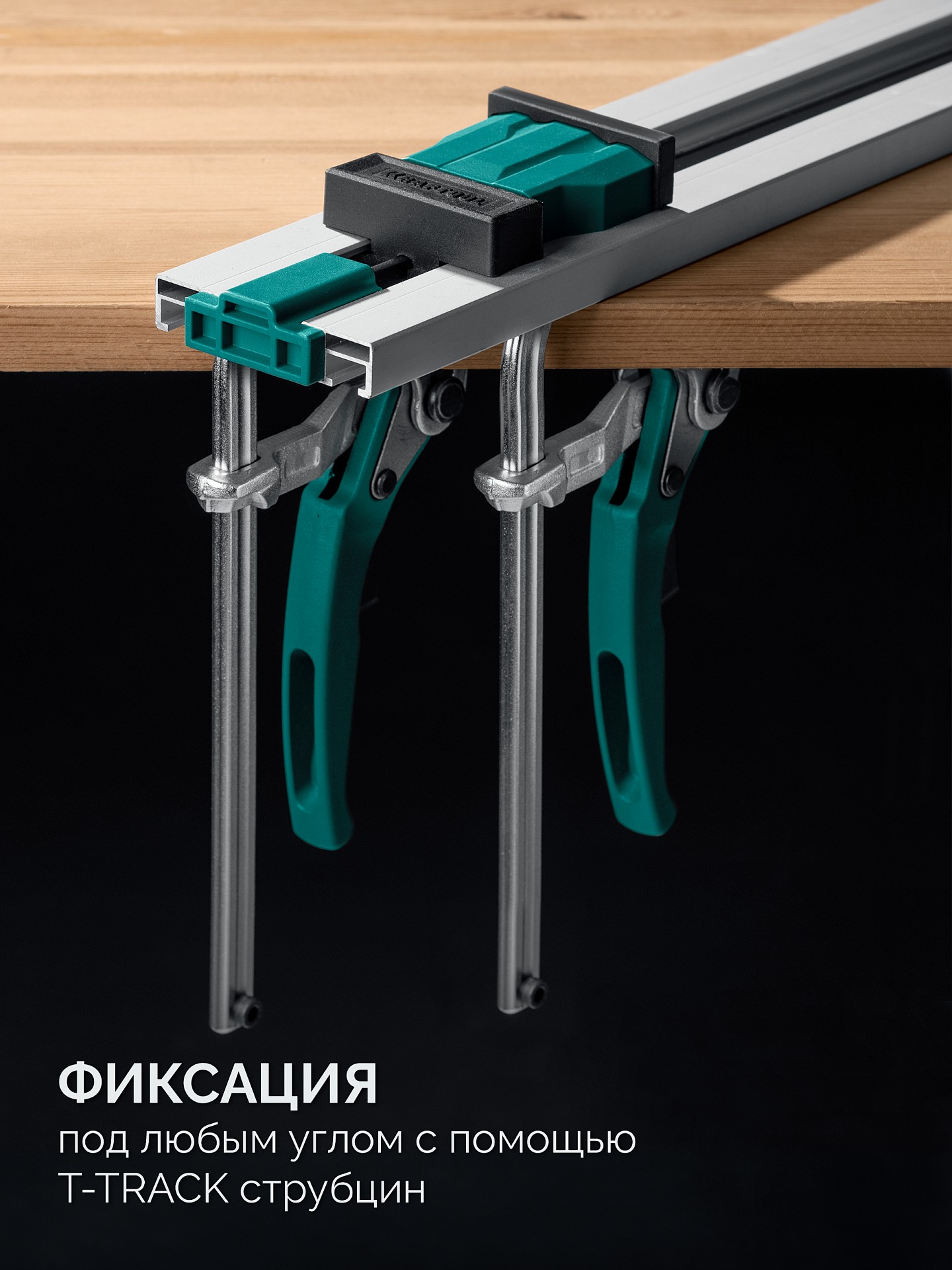 Профессиональный зажимной инструмент из авиационного алюминия, усиленный ребрами жесткости. Два специальных паза T-track значительно расширяют возможности применения.Применение