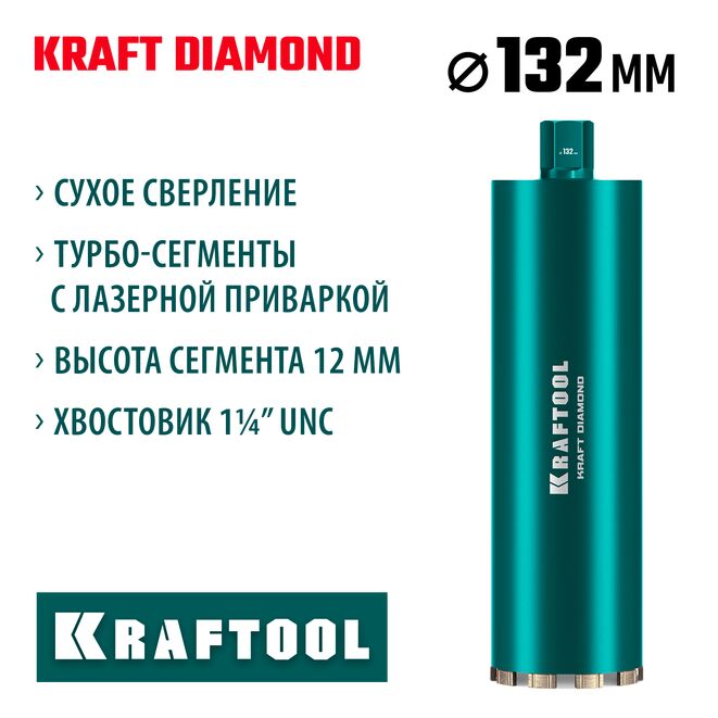 KRAFTOOL DIAMOND 132 мм (450 мм, 1 1/4", лазерная сварка сегментов), алмазная коронка по железобетону (29825-132)