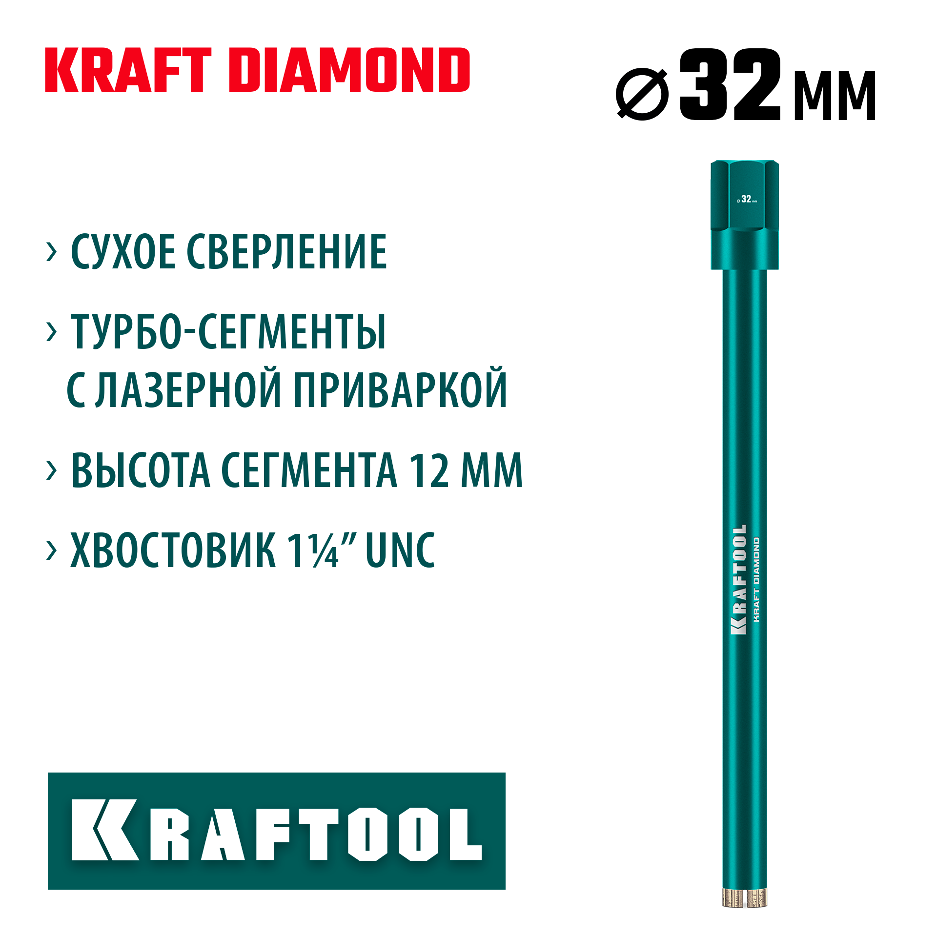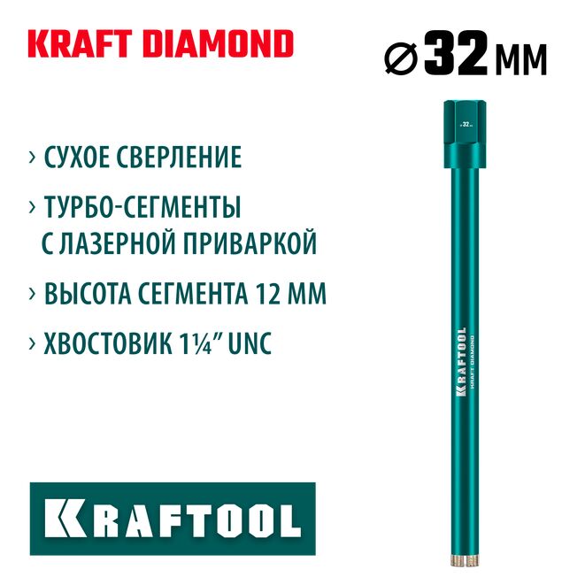 KRAFTOOL DIAMOND 32 мм (450 мм, 1 1/4", лазерная сварка сегментов), алмазная коронка по железобетону (29825-032)