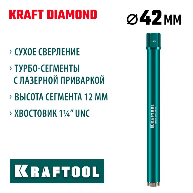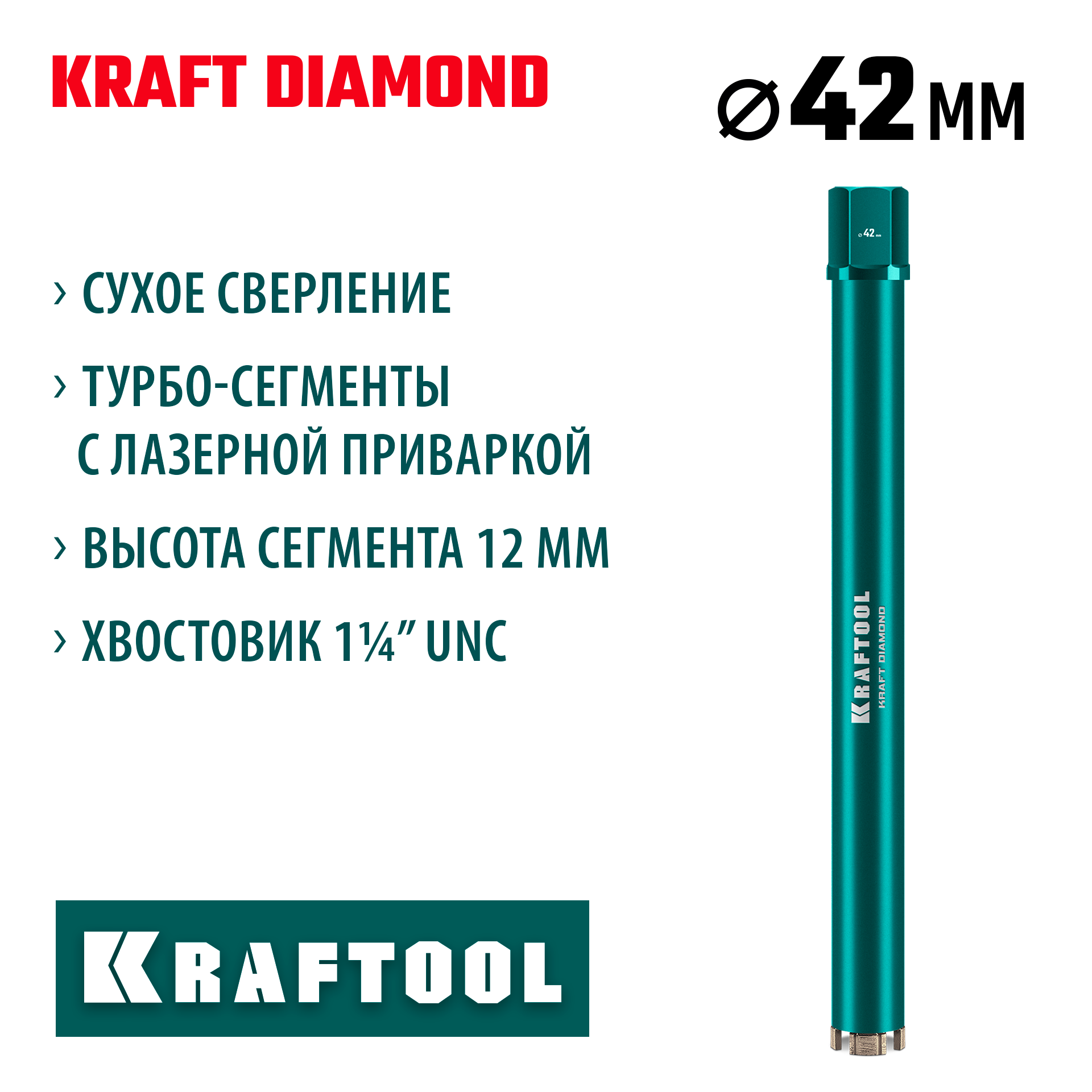 KRAFTOOL DIAMOND 42 мм (450 мм, 1 1/4", лазерная сварка сегментов), алмазная коронка по железобетону (29825-042)