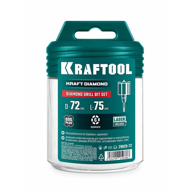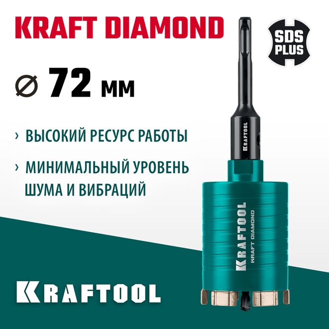 KRAFTOOL DIAMOND d 72 мм (М16; рабочая глубина 75 мм, лазерная сварка), алмазная коронка для подрозетников (29820-72)