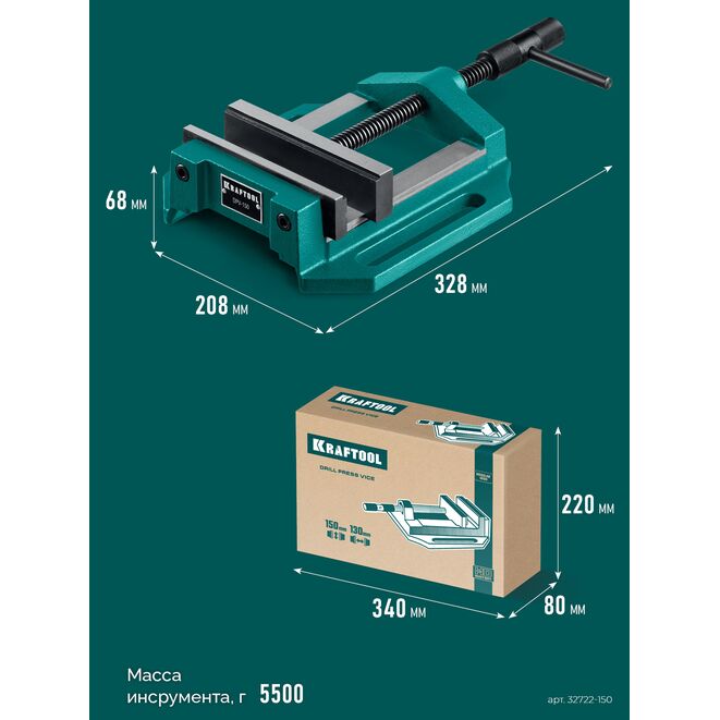 KRAFTOOL DPV-150, 150 мм, станочные сверлильные тиски (32722-150)