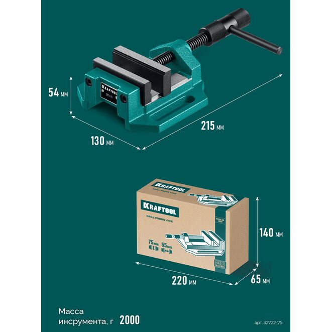 KRAFTOOL DPV-75, 75 мм, станочные сверлильные тиски (32722-75)