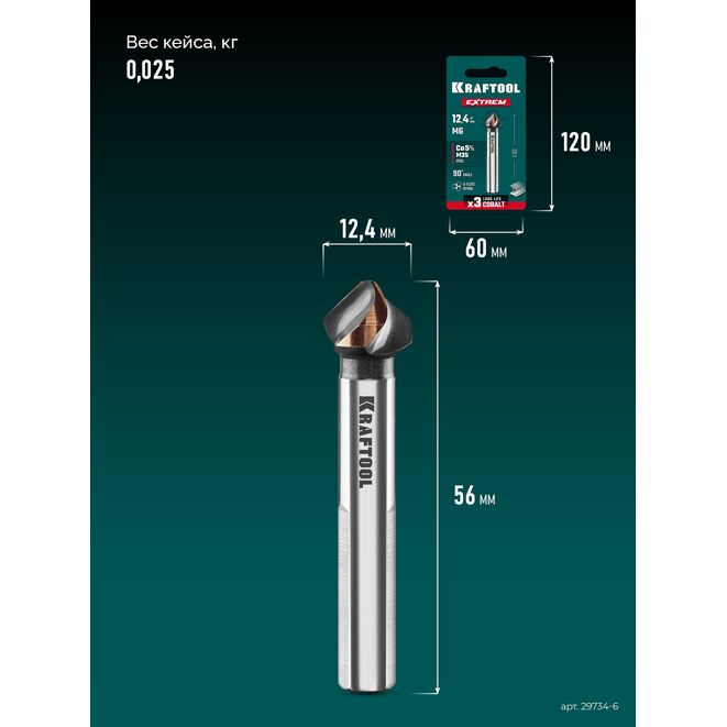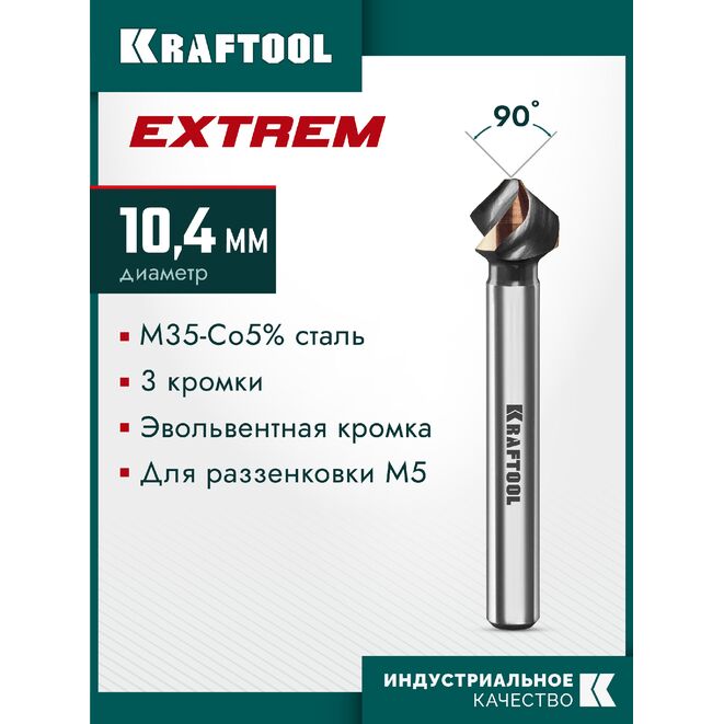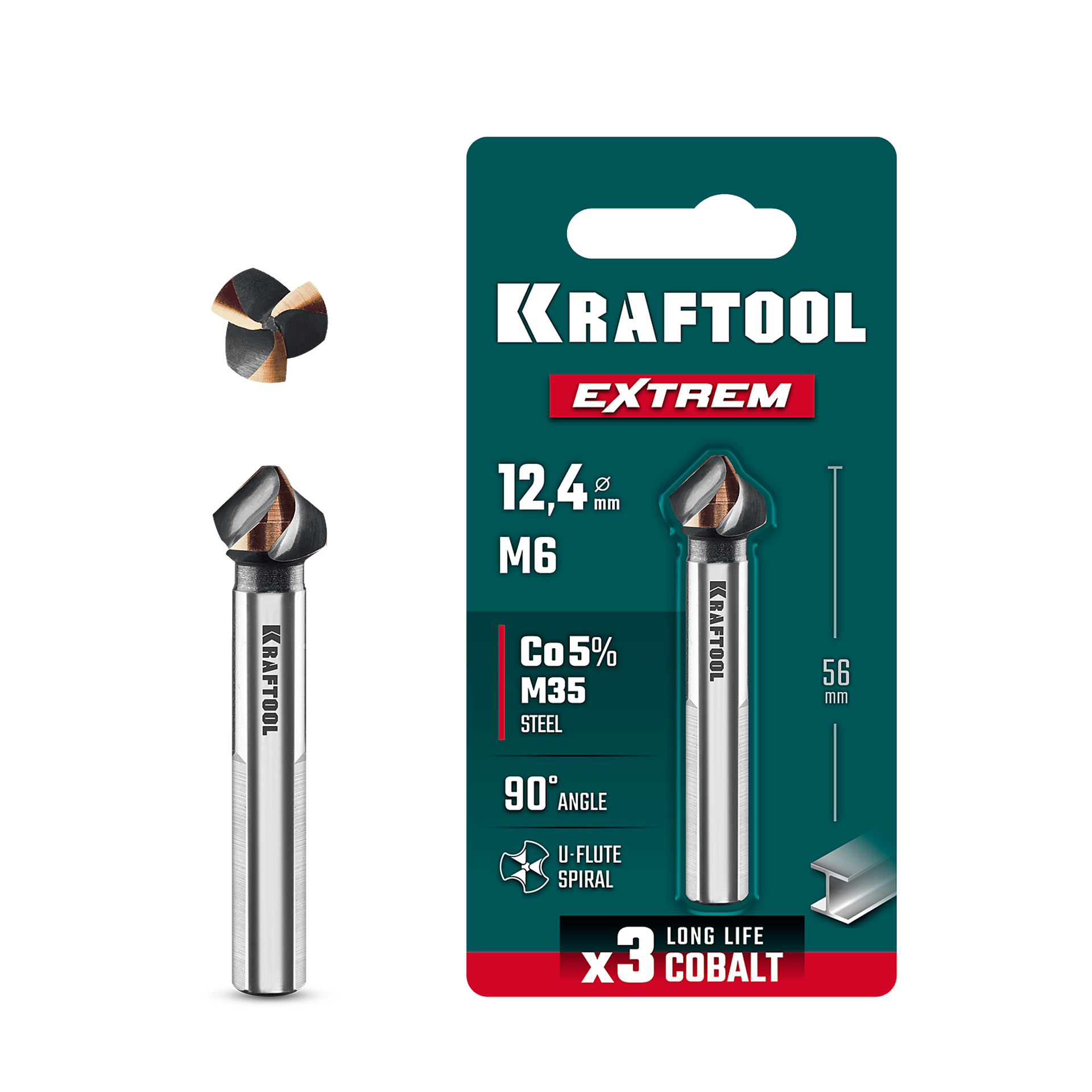 KRAFTOOL EXTREME Со5-А, d 12.4 х 56 мм, сталь M35, U-образная спираль, для раззенковки М6, Конусный зенкер (29734-6)