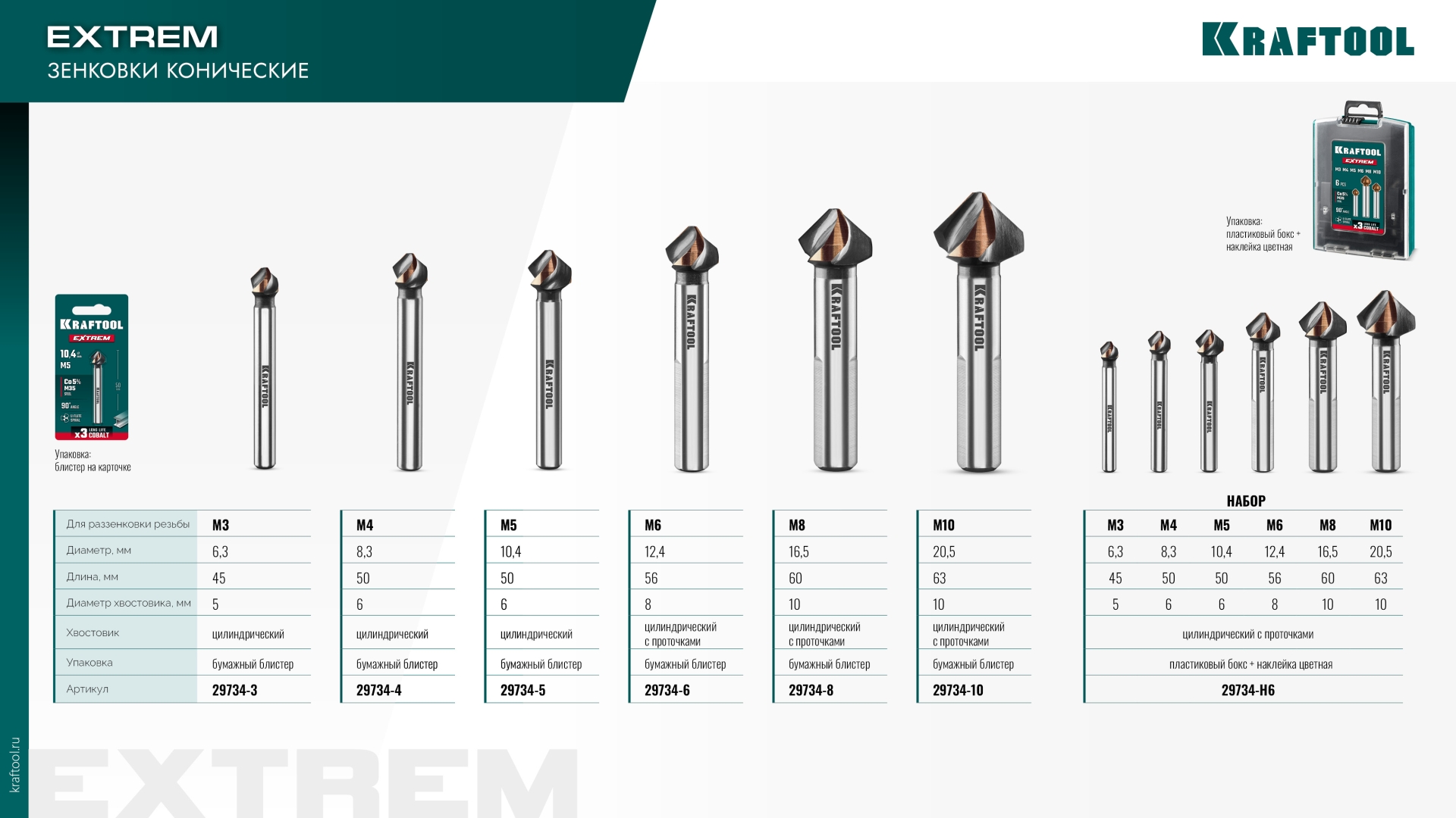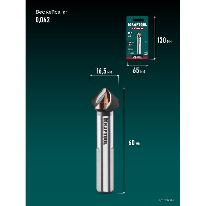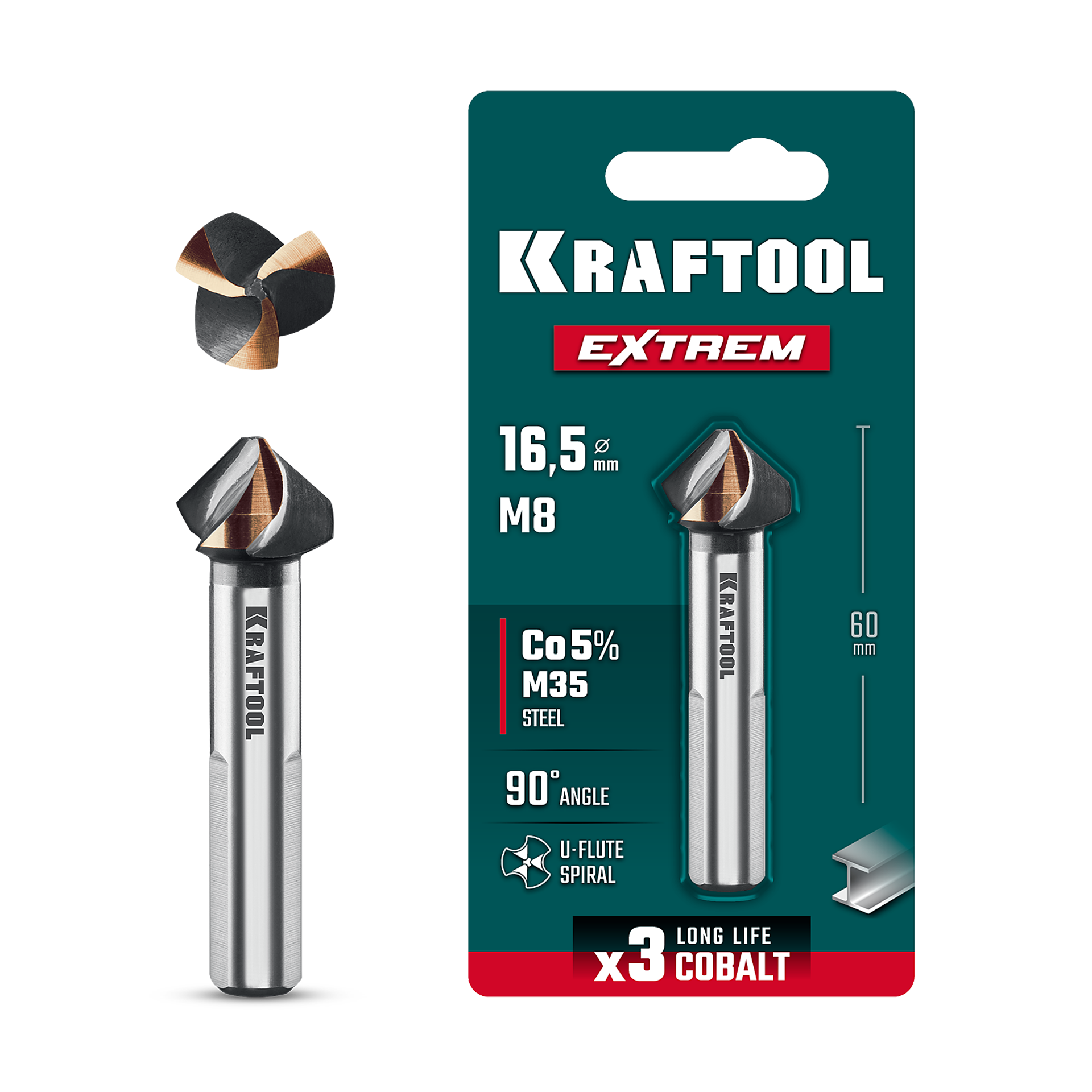 KRAFTOOL EXTREME Со5-А, d 16.5 х 60 мм, сталь M35, U-образная спираль, для раззенковки М8, Конусный зенкер (29734-8)