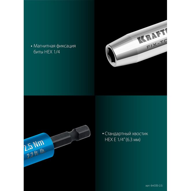 KRAFTOOL FIX-TORQ 2.5 Нм динамометрический адаптер для бит (64035-2.5)