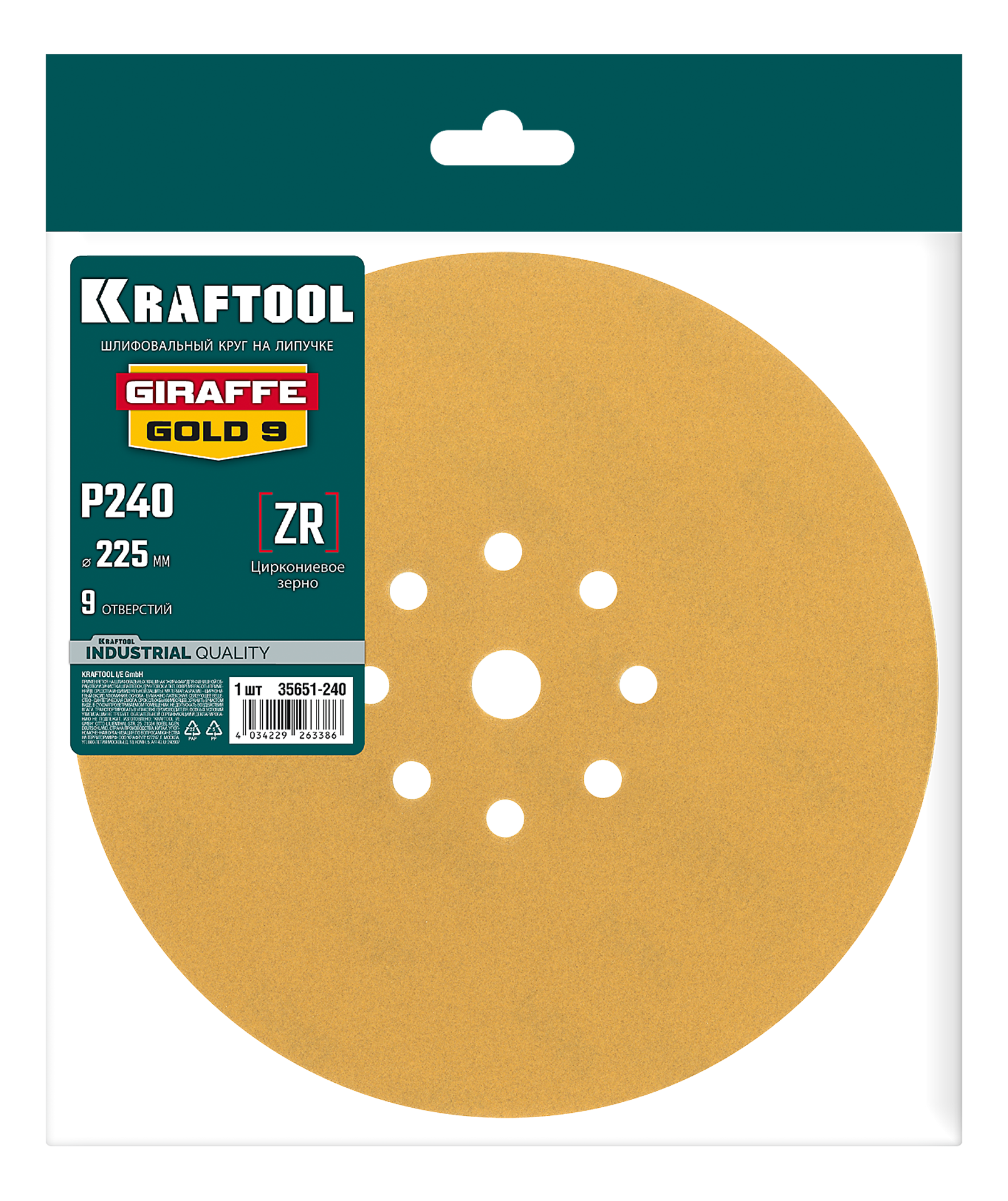 KRAFTOOL Giraffe GOLD-9 225 мм, Р240, шлифовальный круг на липучке, 9 отв. (35651-240)