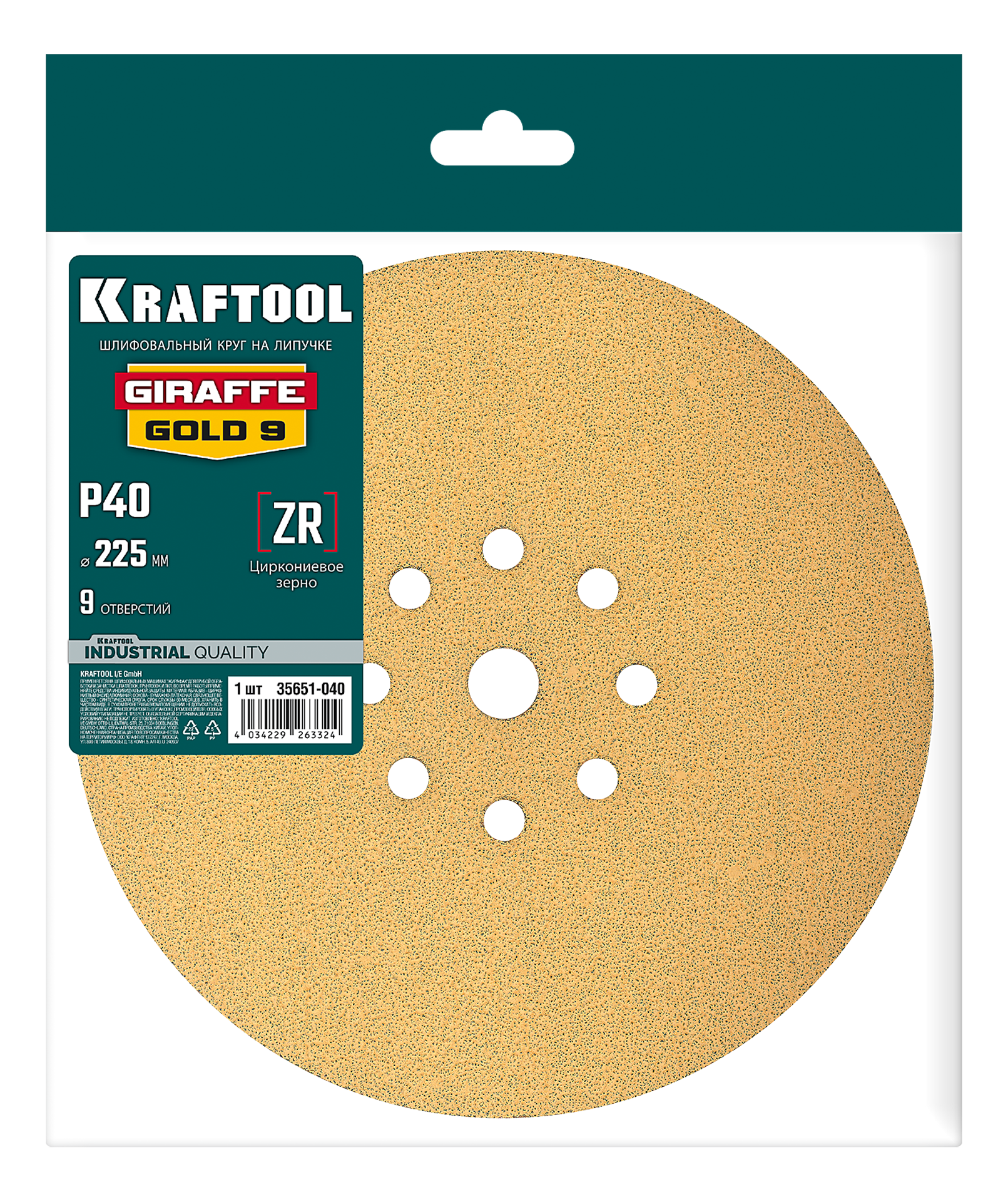 KRAFTOOL Giraffe GOLD-9 225 мм, Р40, шлифовальный круг на липучке, 9 отв. (35651-040)