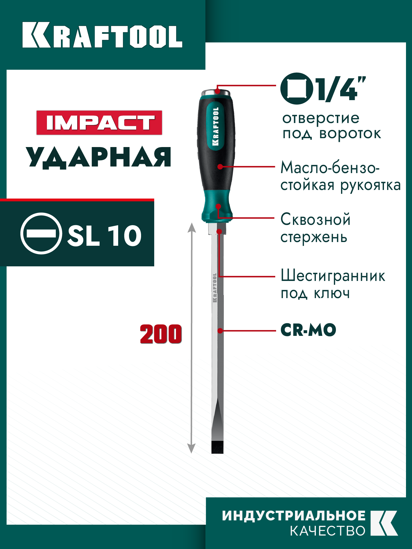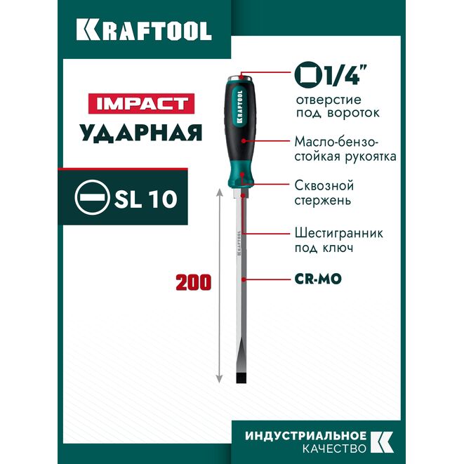 KRAFTOOL IMPACT SL 10, сквозной стержень Cr-Mo, ударная отвертка (250033-10)