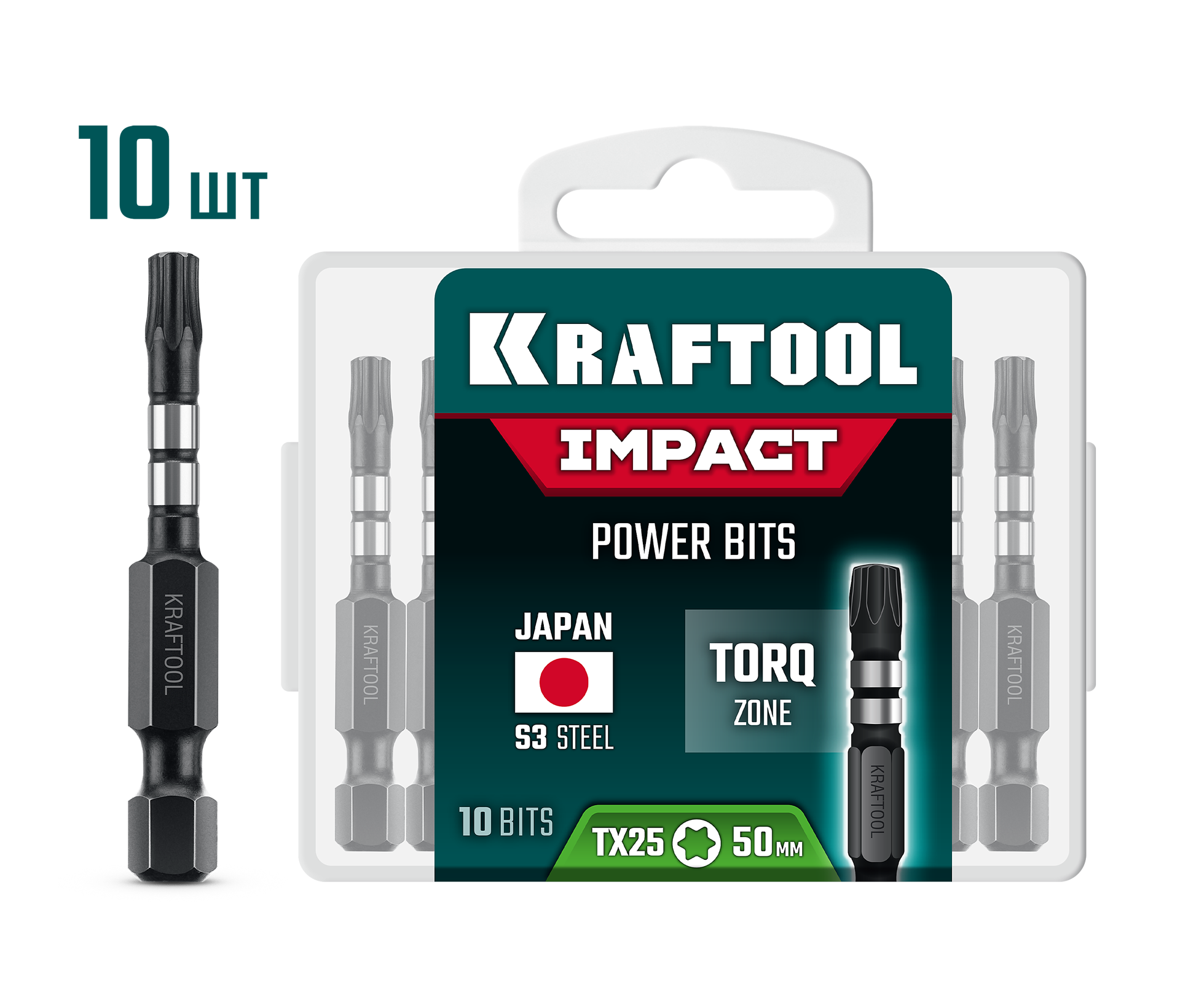 KRAFTOOL Impact TX 20, 50 мм, 10 шт, ударные биты (26195-20-50-S10)