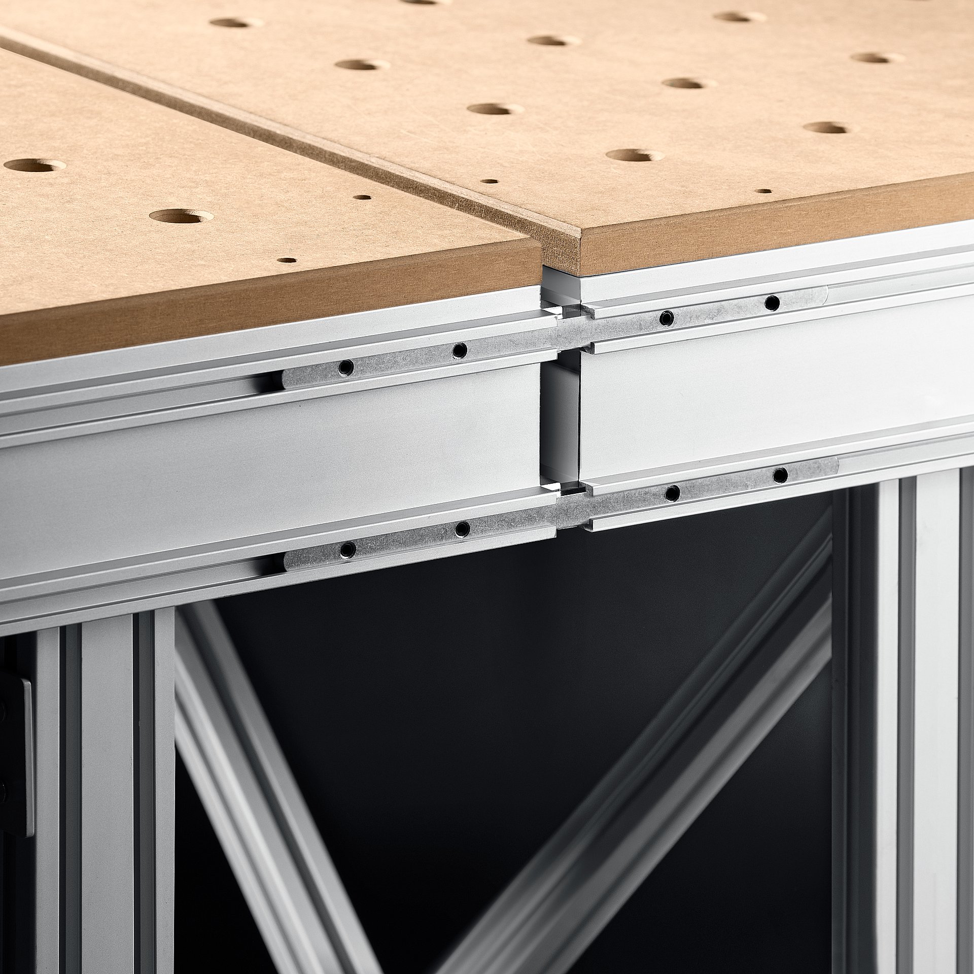 - - Универсальная прочная конструкция из алюминиевого анодированого профиля и МДФ 19 мм