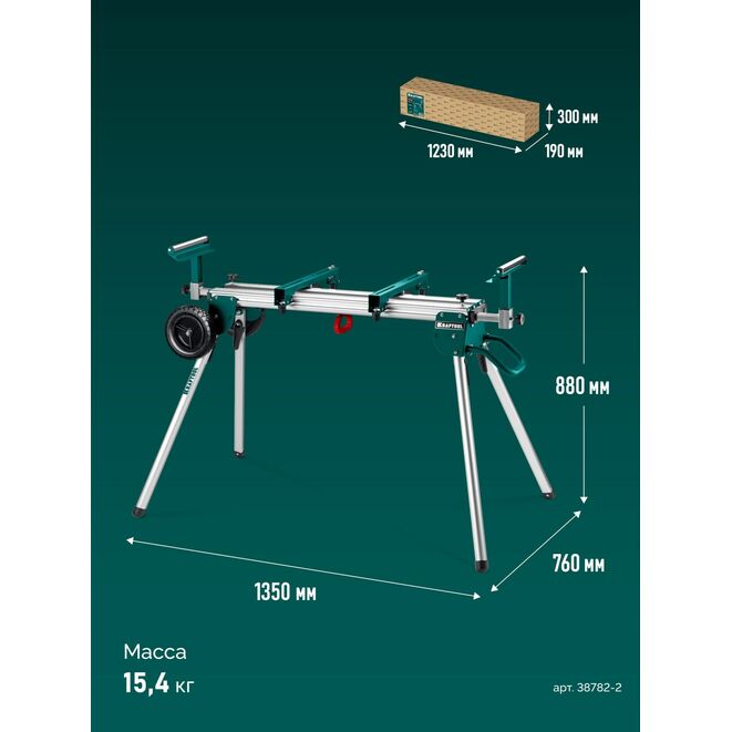 Стол для торцовочных пил KRAFTOOL 38782-2 специально разработан для удобства работы и повышения эффективности использования торцовочной пилы, настольных станков, таких как пилы, ленточнопильные станки, спиральные пилы, строгальные станки и т. д. Отличное решение для транспортировки и работы с инструментом на любой строительной площадке.Характеристики Kraftool 38782-2: