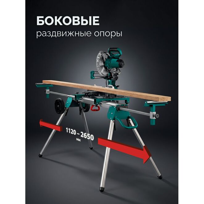 KRAFTOOL MSA-1200 U, (1120-2650)х765х970 мм, алюминиевый мобильный стол для торцовочных пил с ручкой и колесами (38782-2)
