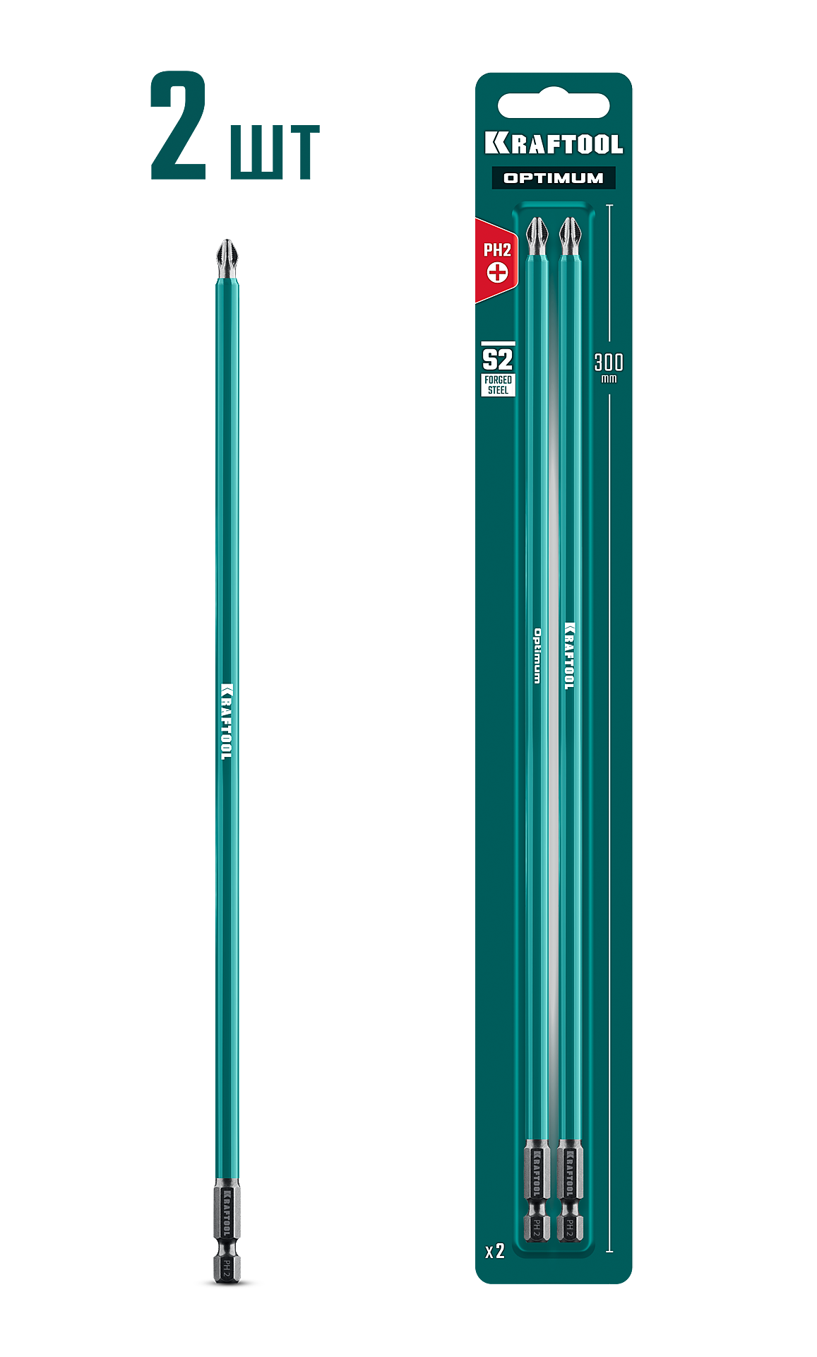 KRAFTOOL OPTIMUM PH 2, 300 мм, 2 шт, биты (26122-2-300-2)