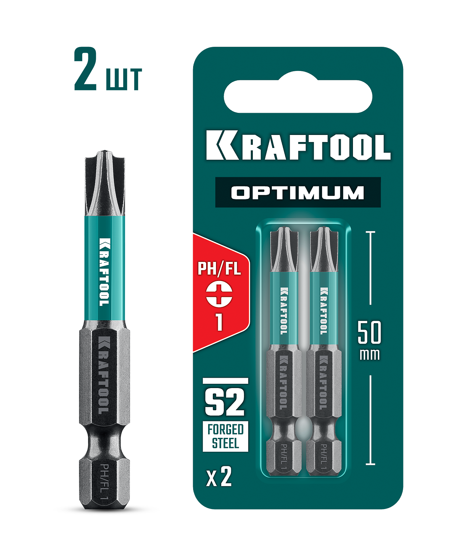 KRAFTOOL OPTIMUM PH/FL 1, 50 мм, 2 шт, биты (261221-1-50-2)