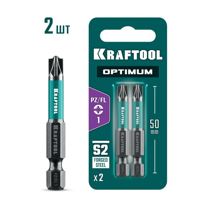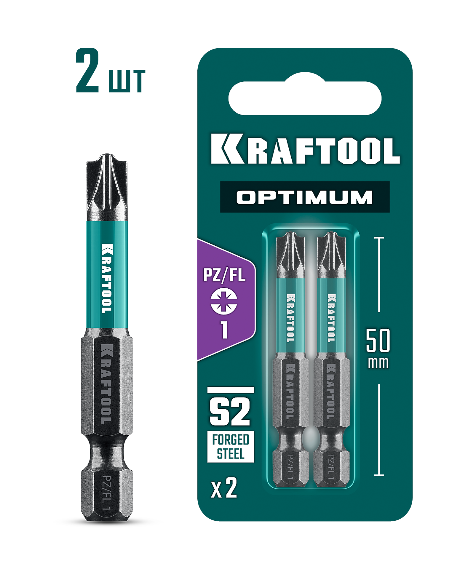 KRAFTOOL OPTIMUM PZ/FL 1, 50 мм, 2 шт, биты (261241-1-50-2)