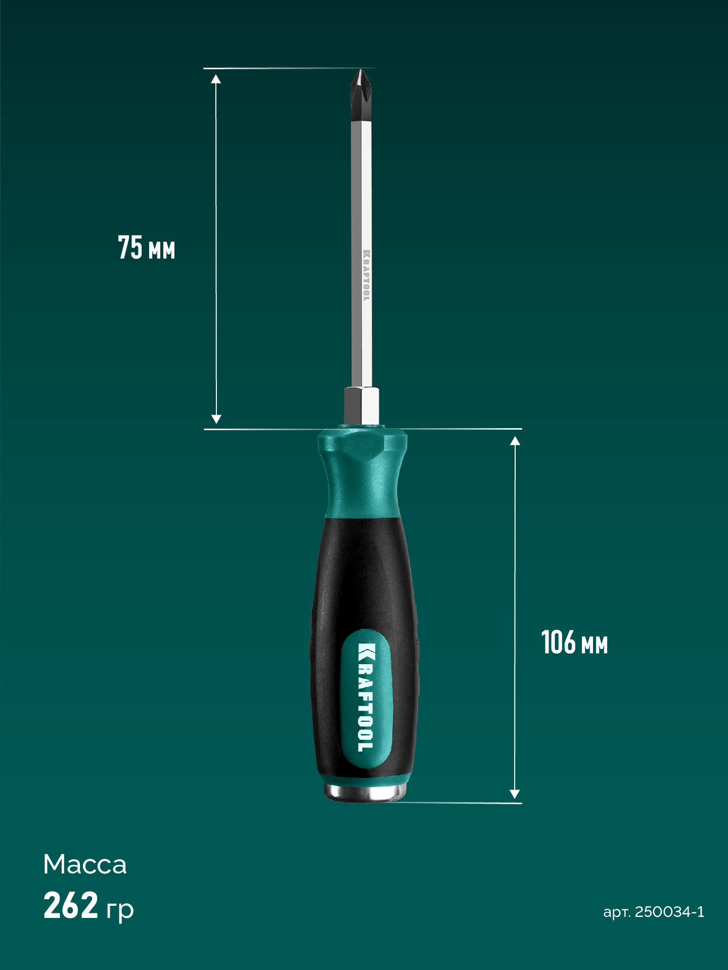 Отвертка ударная KRAFTOOL 250034-1, предназначена для монтажа и демонтажа резьбовых соединений с применением значительных усилий. Профессиональные ударные отвертки Kraftool изготовлены из высококачественной хромолибденовой стали и обсеспечивают максимальный срок службы при высоких нагрузках.Характеристики Kraftool 250034-1:
