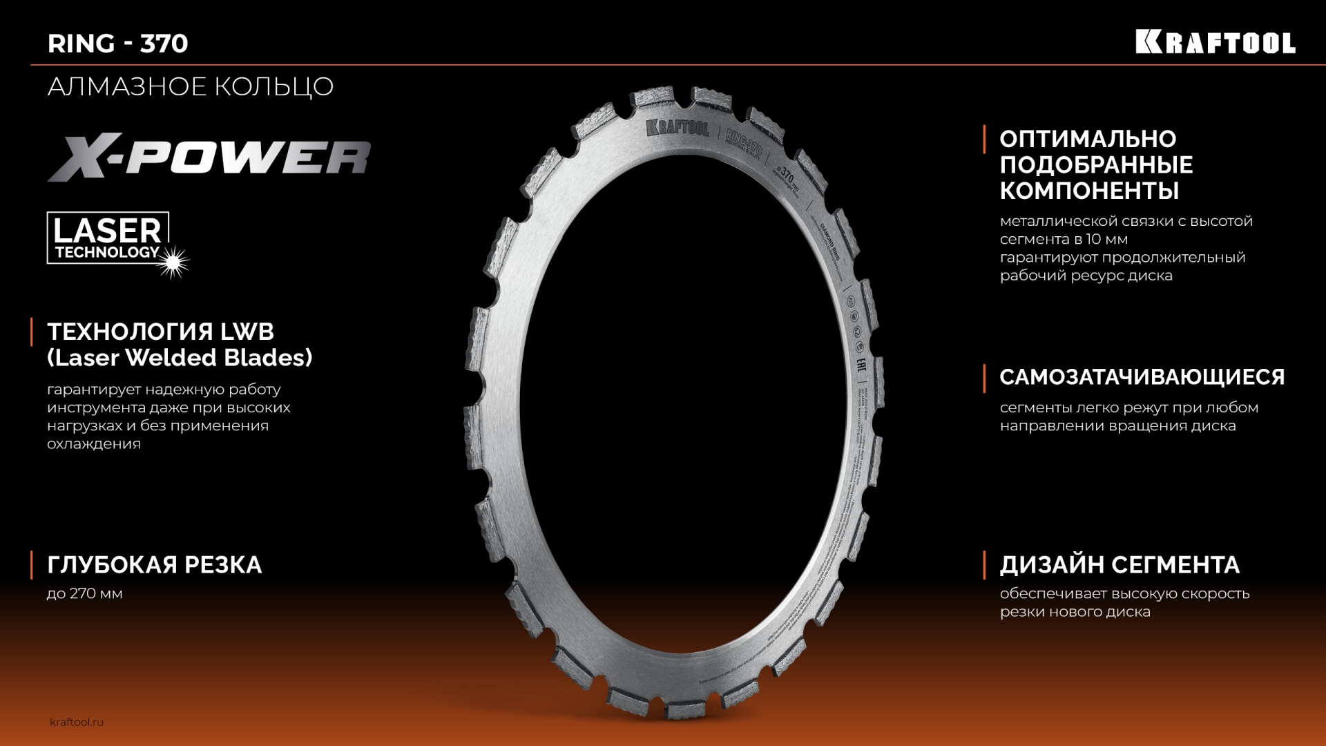 Алмазные отрезные кольца Kraftool RING-370 - профессиональный инструмент, отвечающий самым высоким стандартам качества.Применение