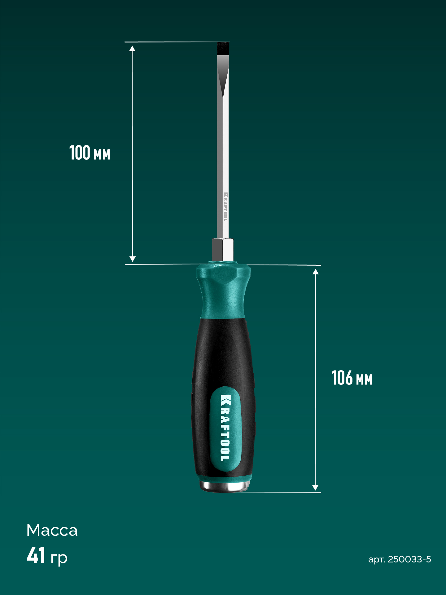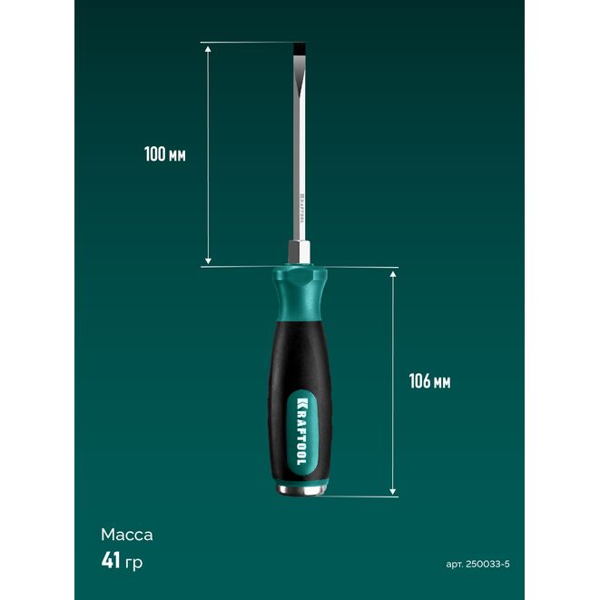 Отвертка ударная Impact KRAFTOOL 250033-5, предназначена для монтажа и демонтажа резьбовых соединений в промышленности, коммунальном секторе, профессиональных и личных мастерских при проведении различных слесарных работ. Профессиональные ударные отвертки Kraftool изготовлены из высококачественной хромолибденовой стали и обсеспечивают максимальный срок службы при высоких нагрузках.Характеристики Kraftool 250033-5: