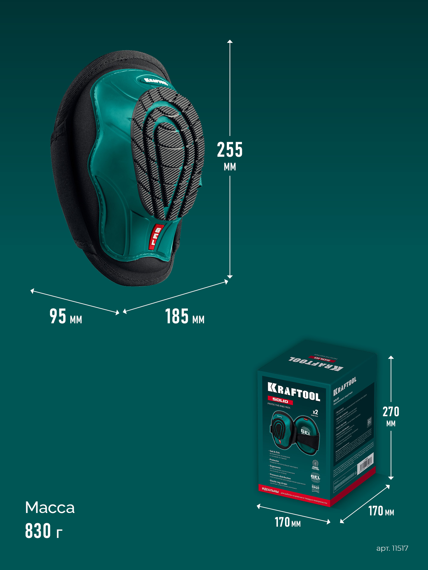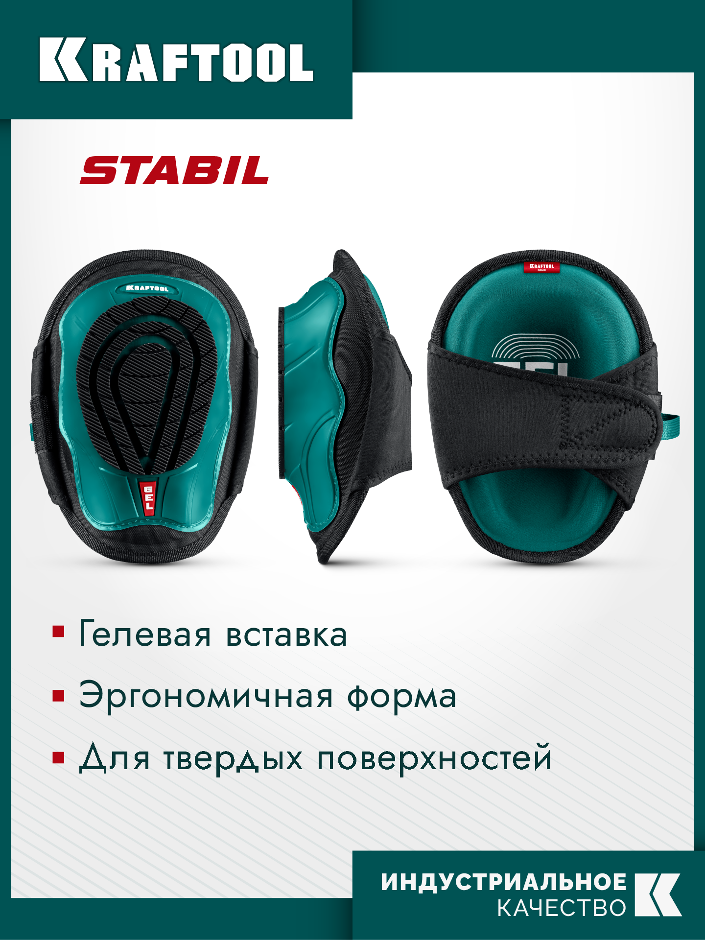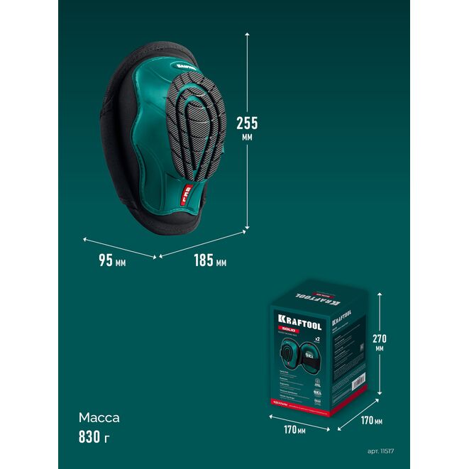 KRAFTOOL SOLID гелевая вставка, объёмная противоскользящая накладка, наколенники защитные (11517)