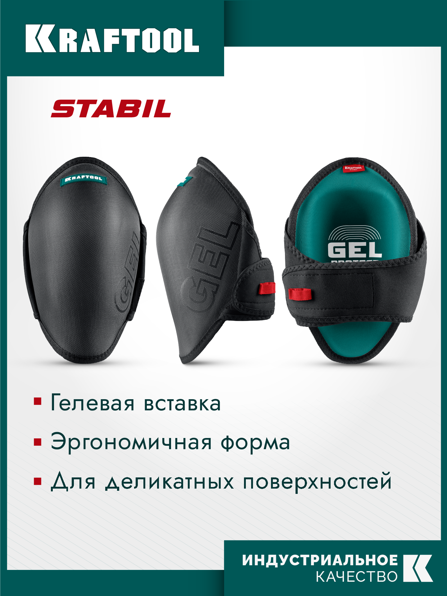 KRAFTOOL STABIL эргономичные, гелевая вставка, воздухопроницаемые, для легко повреждаемых поверхностей, наколенники защитные (11516)